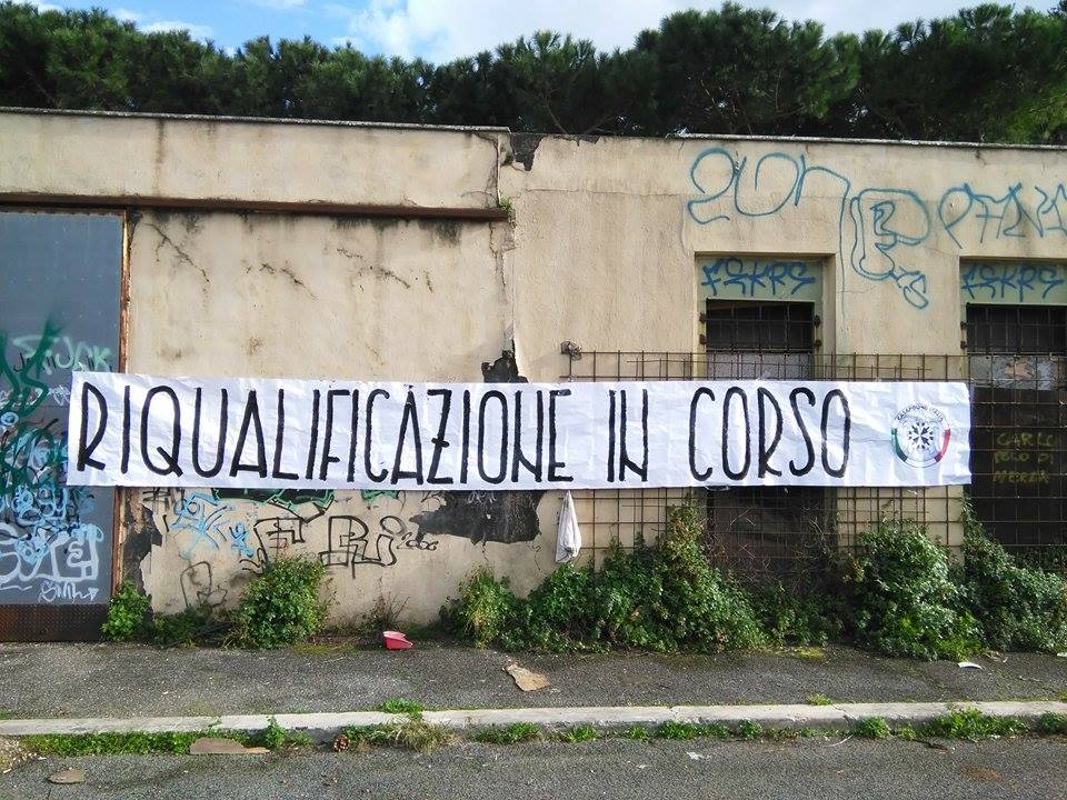 Questo pomeriggio i militanti di CasaPound Italia Pomezia hanno esposto uno striscione con su scritto “Riqualificazione in corso” e, muniti di guanti e rastrello, hanno ripulito un’area di via F. Turati lasciata ormai nel più totale stato di abbandono.