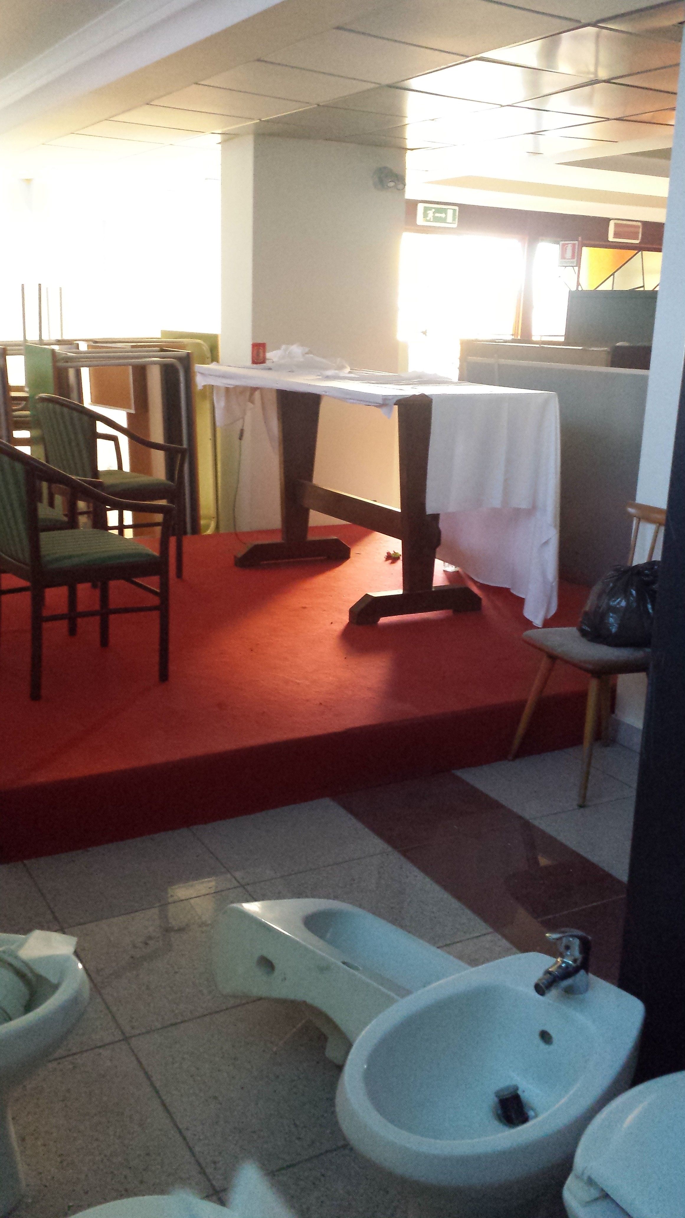 “A distanza di oltre due anni si è arrivati addirittura ad utilizzare come magazzino per il deposito di arredi e sanitari la Chiesa esistente all’interno della struttura principale del College Selva dei Pini, attualmente utilizzata ad uffici pubblici dell’Ente, come peraltro si evince chiaramente dalle immagini che ho scattato”, dichiara l’ex assessore. Nelle foto si vedono chiaramente, vicino l’altare, bidet, lavandini e gabinetti, oltre che mobilio di vario genere.