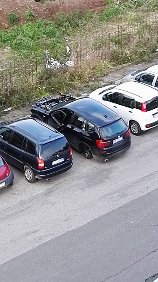Brutto risveglio, oggi, per alcuni cittadini del quartiere Querceto/Colli di Enea, dove questa mattina alcuni automobilisti hanno ritrovato la loro vettura priva di tutte e quattro le ruote. In un caso addirittura è stato asportato anche il cofano dell’auto, una BMW. Sempre nello stesso parcheggio, una mini cooper è stata danneggiata, mentre a una fiat Panda è stato rotto il finestrino e rubato il crik e il rotino di scorta. Per completare, i malviventi hanno anche tagliato i fili dei pali della luce alla destra e alla sinistra delle auto parcheggiate.