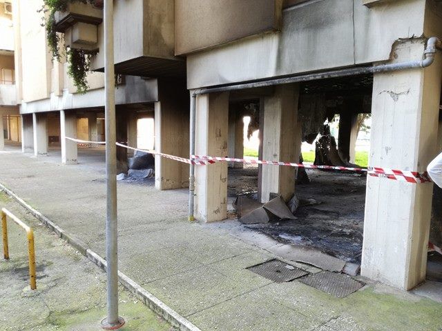 Sul posto, allertati dagli abitanti che hanno visto le fiamme, sono intervenuti i vigili del fuoco, che – vista l’intensità dell’incendio – hanno dovuto far evacuare un appartamento posto al primo piano. Le fiamme in poco tempo hanno attaccato il materiale che isola il portico e lo “separa” dalle abitazioni, dal primo piano del palazzo, tanto da costringere i Vigili del Fuoco di Pomezia intervenuti sul posto ad evacuare per sicurezza un appartamento del primo piano, e sono arrivate quasi alle tubature del gas.