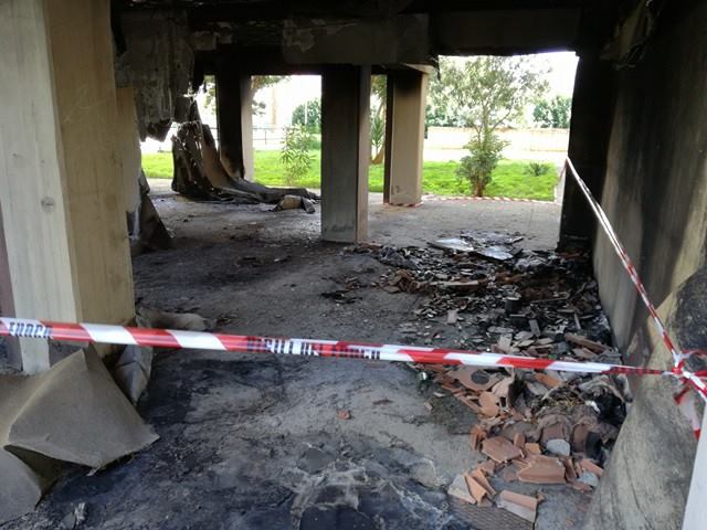 Il piano terra, dove si trova il porticato, appare ora completamente distrutto. Si indaga per capire l’origine delle fiamme – che potrebbero essere state scaturite da un’incendio ai secchioni per i rifiuti indifferenziati o essere derivanti da un evento non doloso come un corto circuito – e soprattutto sulla sua natura.