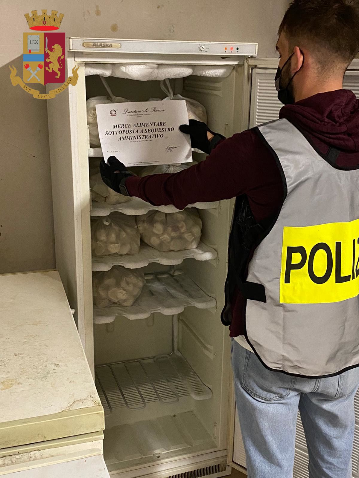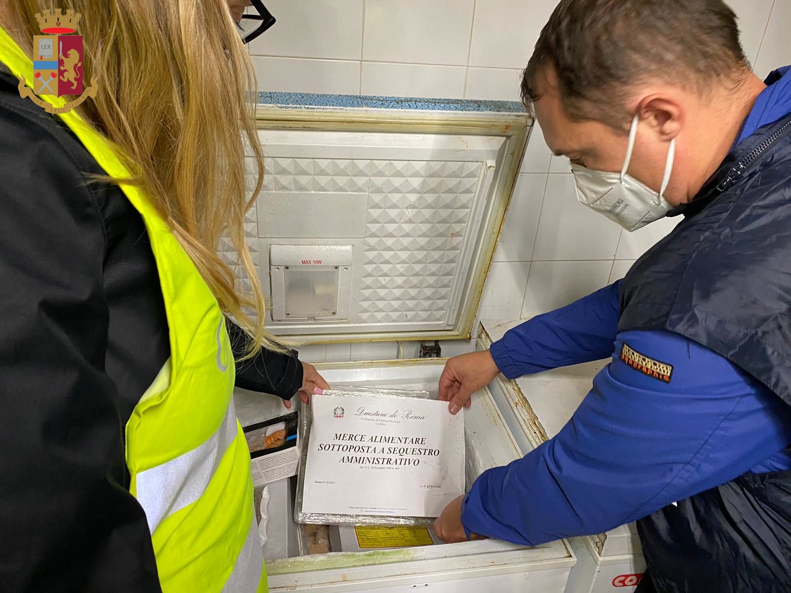 Al servizio hanno partecipato 1 unita Cinofila Antidroga in abiti civili, 4 Unità di Polizia Locale Roma Capitale e 2 Ispettori S.I.A.N. della Asl Roma. Per le gravi carenze igienico sanitarie e strutturali e per la presenza di escrementi di topo e animali infestanti, riscontrati in uno dei 2 locali, è stata proposta la sospensione dell’attività. A causa di una canna fumaria il cui terminale confluisce impropriamente nel bagno riservato alla clientela, comportando di fatto un grave nocumento in termini per la sicurezza della salute, Polizia Locale di Roma Capitale coinvolgerà il settore edilizia per le verifiche del caso. Al termine dell’operazione sono stati sequestrati 31,7 kg di prodotti alimentari e identificate 48 persone.