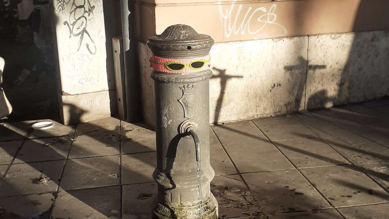 “Vittime” della street art con ago e filo sono poi stati anche i tradizionali “nasoni”, cioè le tipiche fontanelle romane adornate con fiori e occhiali da sole, quindi il blitz fuori quartiere a Villa De Sanctis. Al Pigneto invece sono stati posizionati nel corso del tempo gnomi colorati, e altre coperture sparse qui e là lungo le strade; opere che, pur non essendo autorizzate, non deturpano l’arredo urbano ma che anzi contribuiscono a renderlo più vivibile.