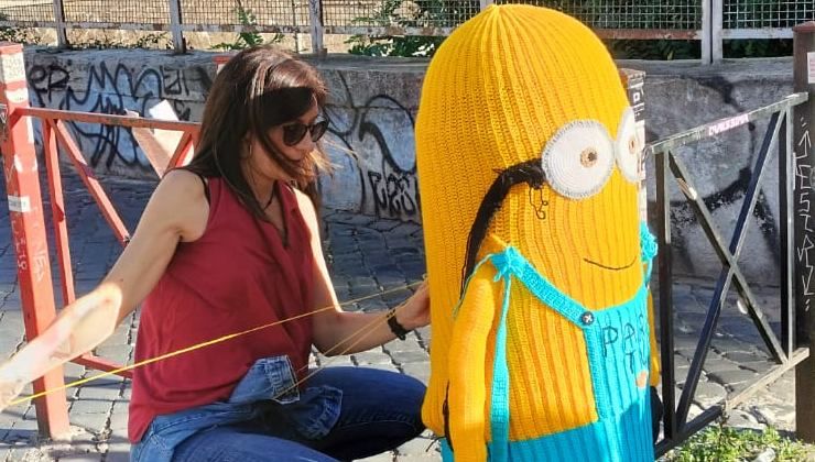 L’ultimo in ordine di tempo è stato un bellissimo Minion posizionato sul ponticello del Pigneto. In questo quartiere, da qualche tempo, appaiono vere e proprie opere d’arte ricamate all’uncinetto che vengono poi posizionate lungo vie e piazze della zona.