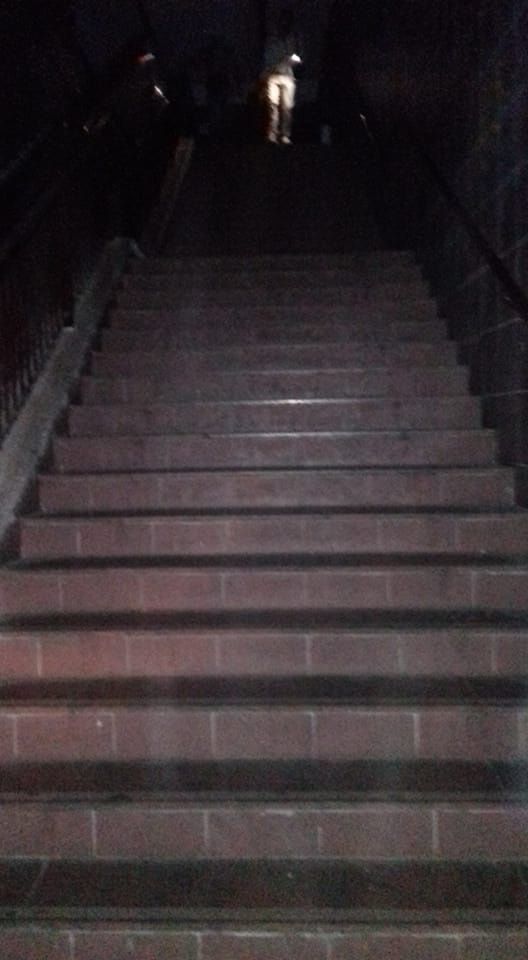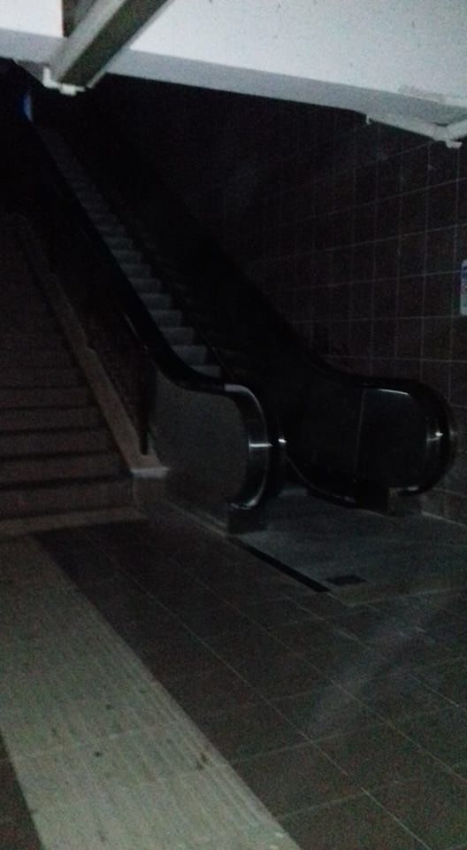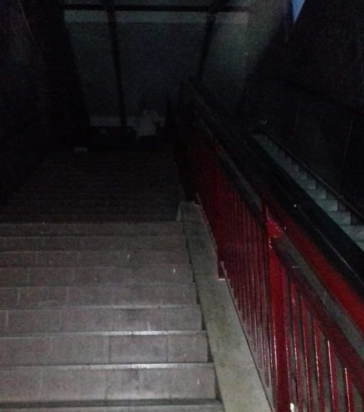 Stazione completamente al buio, sottopassi senza nessuna luce di emergenza, ascensori e “scale mobili” chiaramente inutilizzabili, con bambini impauriti e un paio di persone con disabilità impossibilitati ad uscire all’esterno.