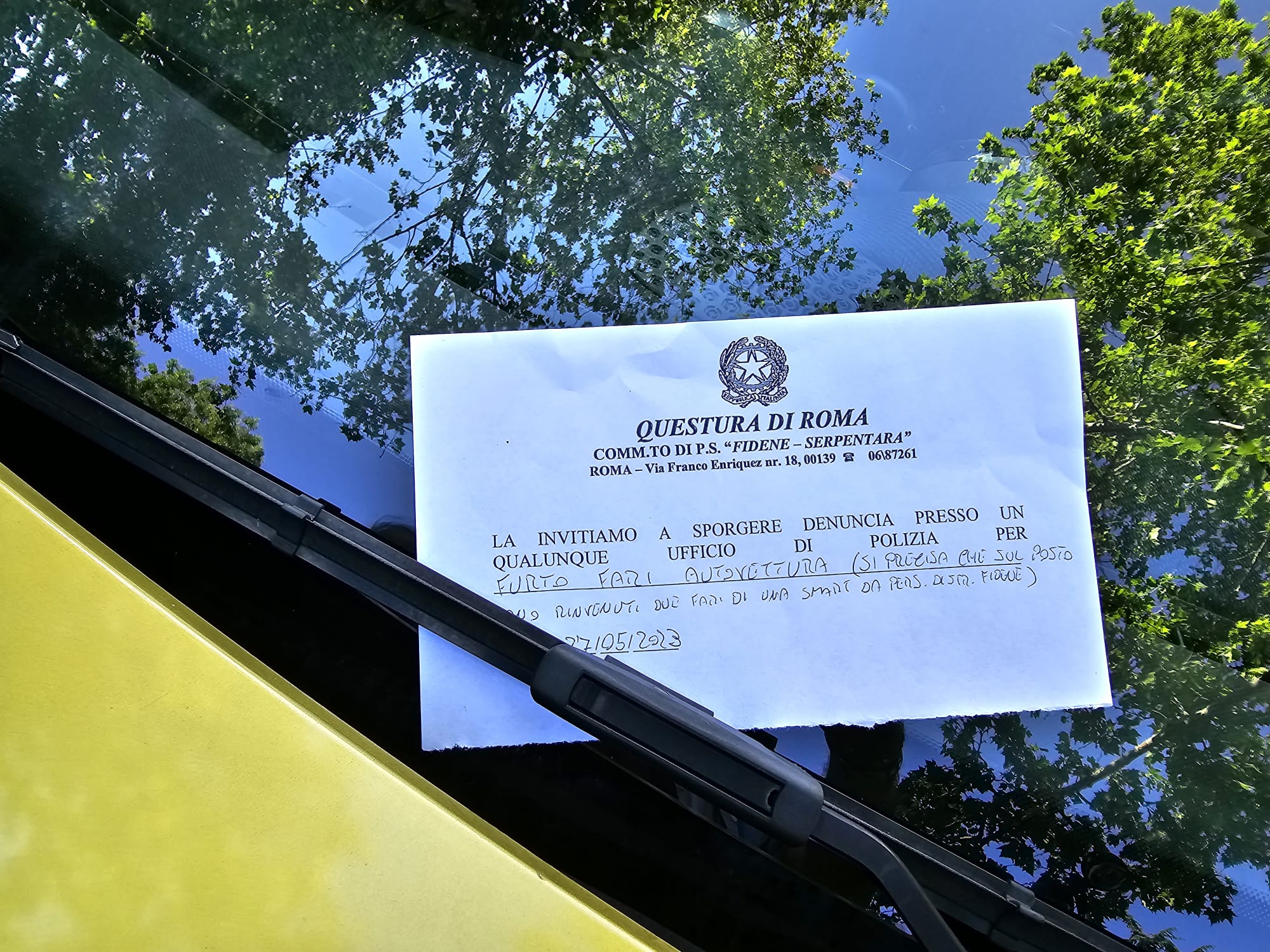 Hanno fatto razzia di fari delle auto, colpendo quelle che erano parcheggiate in via Eugenio Chiesa, al Nuovo Salario, nel III Municipio di Roma. Con maestria hanno smontato sia i fanali anteriori che quelli posteriori delle vetture individuate, evitando di romperli ma non preoccupandosi di fare danni nella scocca o su altre parti della macchina.
