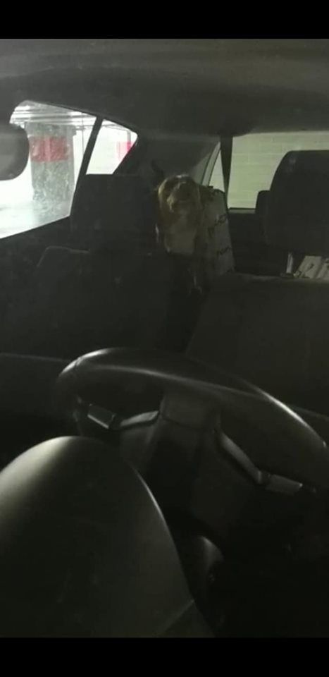I proprietari al centro commerciale ” Gran Roma” e il cane in macchina nel parcheggio che abbaiava per richiedere attenzione dai passanti. Più di una persona ha allertato la direzione del centro commerciale, ma nonostante i ripetuti richiami col megafono nessuno si è presentato alla vettura.