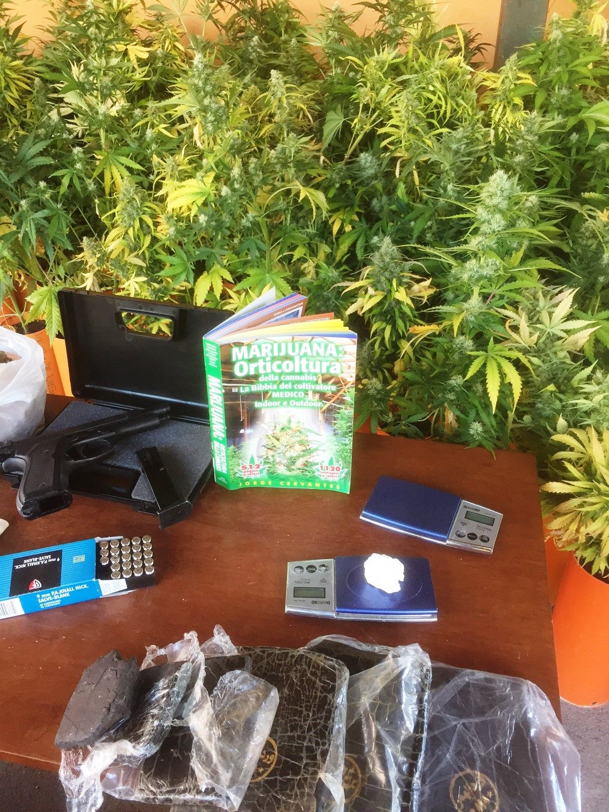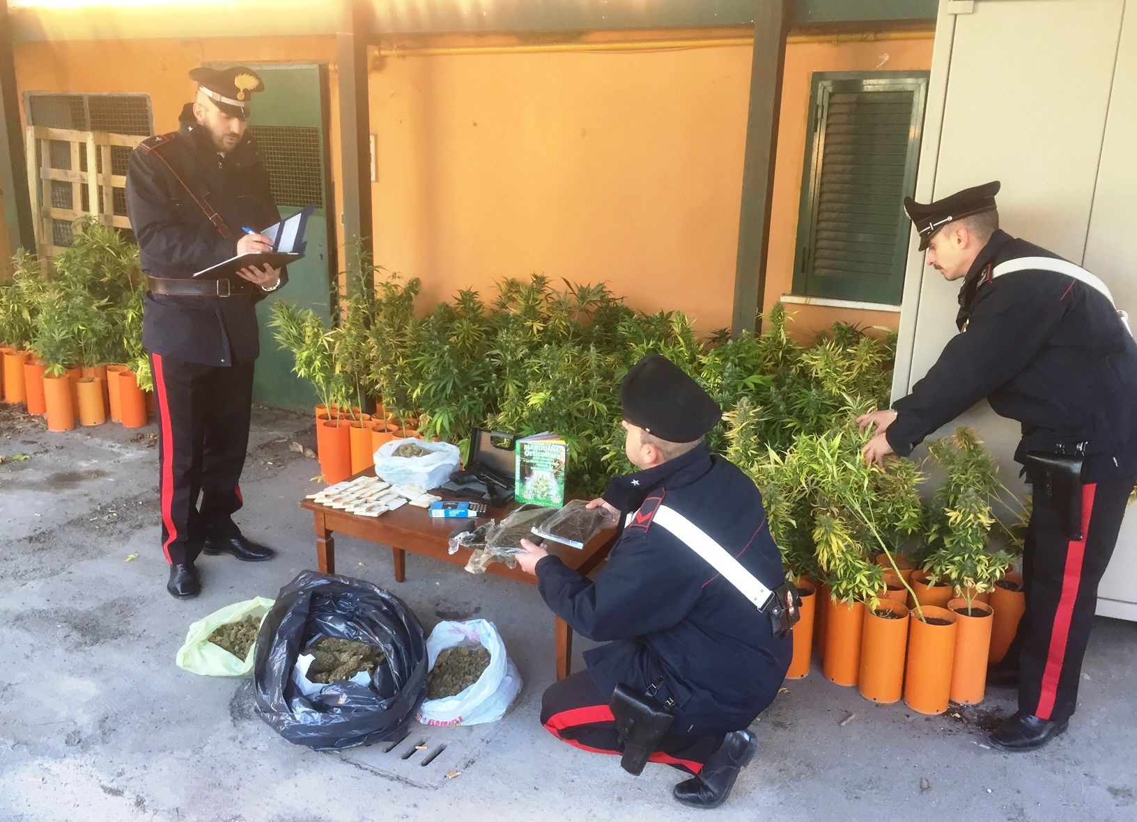 Avevano impiantato un lucroso affare che li spingeva a essere dei “contadini” perfetti. Ma non avevano fatto i conti con i Carabinieri della Stazione di Ostia Antica, che sabato hanno fatto irruzione in una villetta monofamiliare di via Beduschi, a Dragona. Dopo alcuni giorni di discreta osservazione e di accertamenti su uno degli occupanti dell’immobile, che appariva condurre un tenore di vita sproporzionato rispetto alle sue presunte disponibilità, ed avendone osservato un andirivieni costante e ingiustificato a varie ore mattutine e notturne, i Carabinieri hanno sottoposto a perquisizione tutto l’immobile. Se l’abitazione non ha offerto alcun riscontro, la sorpresa l’ha invece prodotta il suo seminterrato: lì, infatti, i militari hanno constatato la costruzione di una vera e propria serra, con tanto di pareti rinfrangenti su compensato, lampade alogene, sistema d’irrigazione temporizzato, ventilatori e concimi. Quanto bastava, insomma, per coltivare in tutta tranquillità poco meno di 200 piante di marijuana che, nonostante le ostiche condizioni climatiche dell’ultimo mese, erano cresciute senza alcun problema. Merito, forse, della conoscenza acquisita dagli inquilini su un libro ritrovato in casa avente ad oggetto l’orticoltura della Cannabis “La Bibbia del coltivatore”. I militari, oltre alle piante, hanno trovato anche vari panetti d’hashish, per poco meno di 2 kg, e 22 g. di cocaina, oltre a una pistola a salve perfetta replica di quelle in dotazione alle forze dell’ordine.