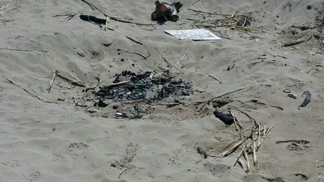 Nelle scorse notti “forme aliene” hanno visitato una delle spiagge più belle di Tor San Lorenzo, creando crateri circolari con tanto di braciere centrale. Tantissimi i “reperti” lasciati da questi “alieni”. Nulla lascia pensare che fossero umani, codesti visitatori di bivacchi notturni: gli umani, almeno quelli civili e attenti all’ambiente, non possono aver fatto cotanto orrore proprio sotto la Torre di Tor San Lorenzo…