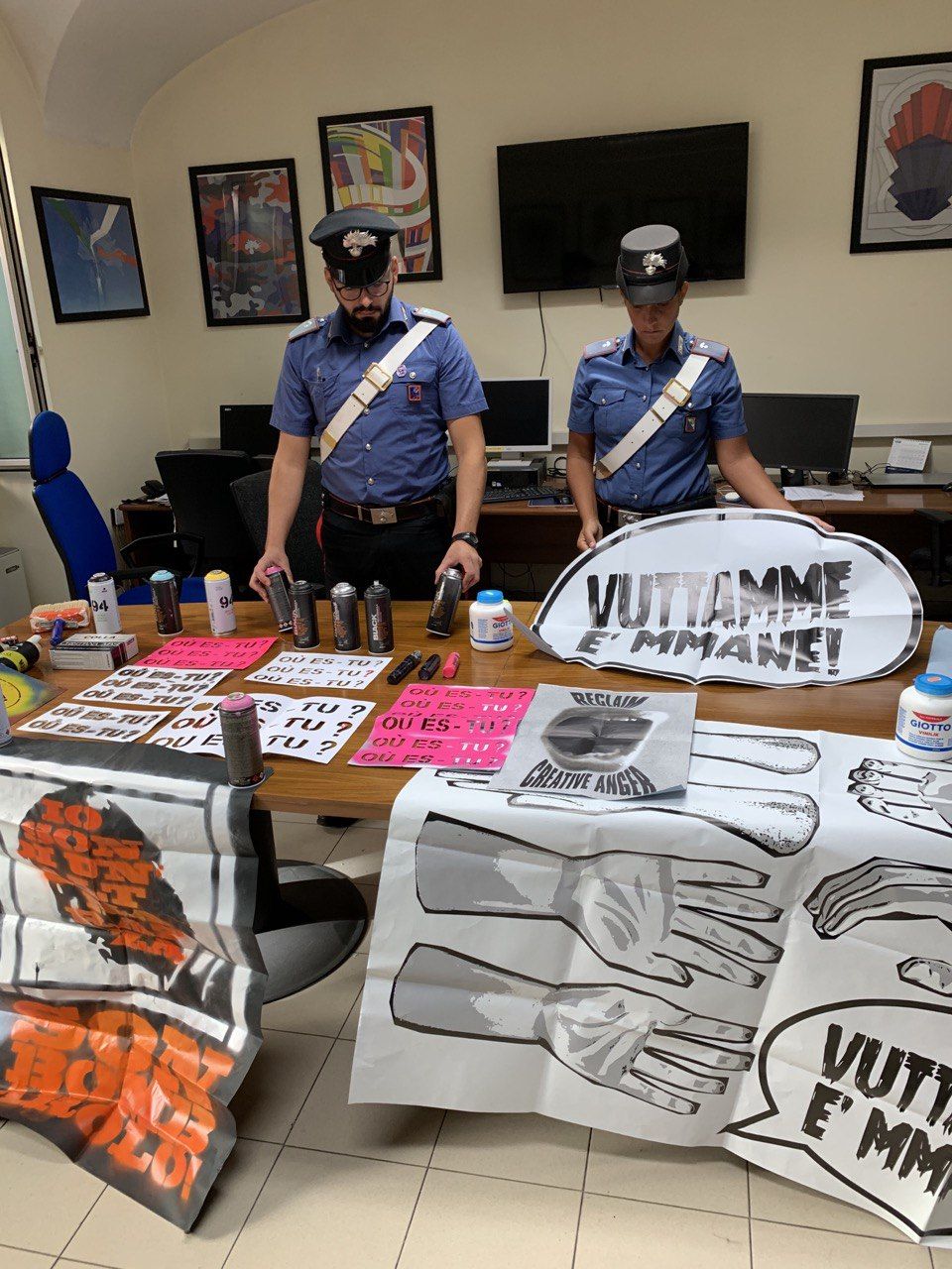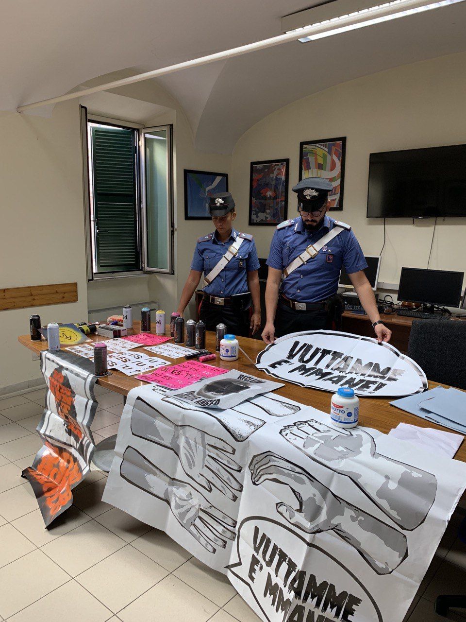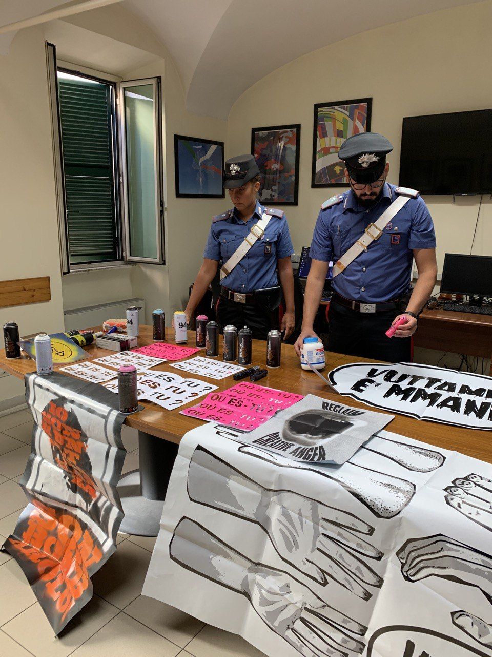 La scorsa notte, i Carabinieri del Nucleo Operativo della Compagnia Roma piazza Dante hanno denunciato a piede libero 4 ragazze e un ragazzo, tutti provenienti da Napoli e provincia, di età compresa tra i 24 e 31 anni, con l’accusa di deturpamento e imbrattamento di cose altrui in concorso. I Carabinieri, su segnalazione di alcuni residenti al 112, sono intervenuti immediatamente, ma prima di raggiungere l’indirizzo indicato dalla centrale Operativa, più precisamente in via Ascoli Piceno all’altezza del civico 32, hanno notato la presenza dei 5 ragazzi intenti ad imbrattare un altro muro e ad affiggere alcuni manifesti. Dopo averli bloccati ed identificati, sono stati perquisiti e trovati in possesso di ben 15 bombolette spray, colla liquida per manifesti, vari stencil e pennarelli. Successivamente, i militari hanno contattato la richiedente dell’intervento la quale ha fornito delle foto scattate dalla finestra della sua abitazione mentre i 5 stavano imbrattando la parete di un palazzo di via Fivizzano, dalle quali si notava l’abbigliamento corrispondente a quello indossato dai giovani fermati poco prima. Tutto il materiale rinvenuto dai militari è stato sequestrato e messo a disposizione dell’Autorità Giudiziaria mentre, i 5 ragazzi deferiti e rimessi in libertà.
