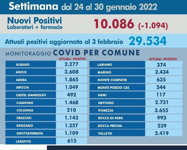 Se guardiamo ai numeri al 24 gennaio 2022 erano infatti oltre 33,000 i cittadini attualmente positivi nei 21 Comuni del distretto. Il Comune peggiore, Anzio, ne aveva poco più di 4,000, seconda Pomezia per l’appunto con 3,829. Non va meglio a Nettuno dove anche qui i casi sono sopra quota 3,000. Una manciata infine i territori con contagi sotto quota 1,000 – quelli più piccoli chiaramente – mentre la gran parte dei 21 Comuni è tutta intorno ad una media di 1,000-1,500 casi.