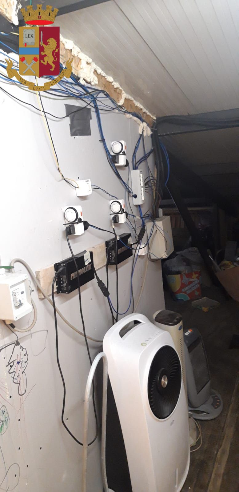 Qui i poliziotti hanno trovato una vera e propria serra per la coltivazione di marijuana che il proprietario di casa aveva allestito nel sottotetto. Nella circostanza sono stati rinvenuti 146 vasi con piante di canapa indiana, materiale per la coltivazione, fertilizzanti, lampade ed umidificatori.