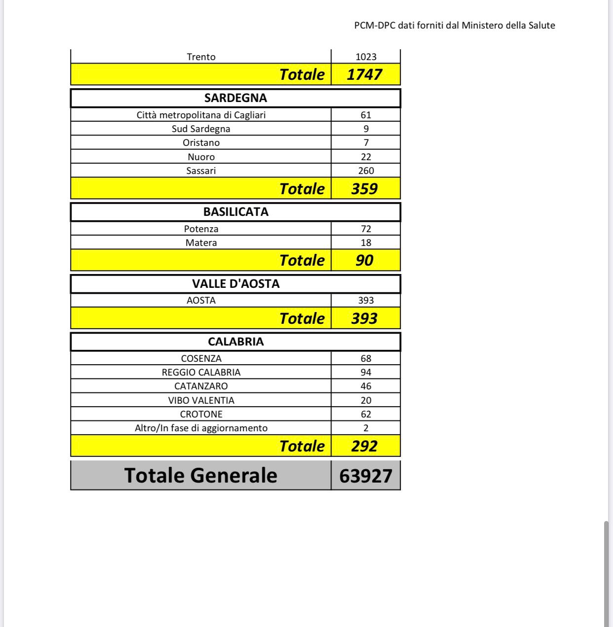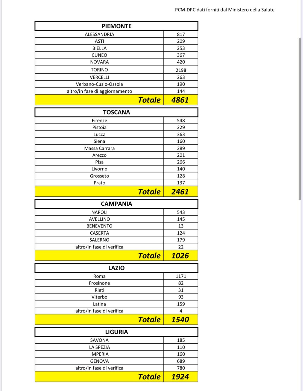 Per ciò che riguarda il numero delle vittime nelle elaborazioni della Protezione Civile il numero dei decessi è sempre seguito da un asterisco con la dicitura “in attesa di conferma dell’Istituto Superiore della Sanità”.