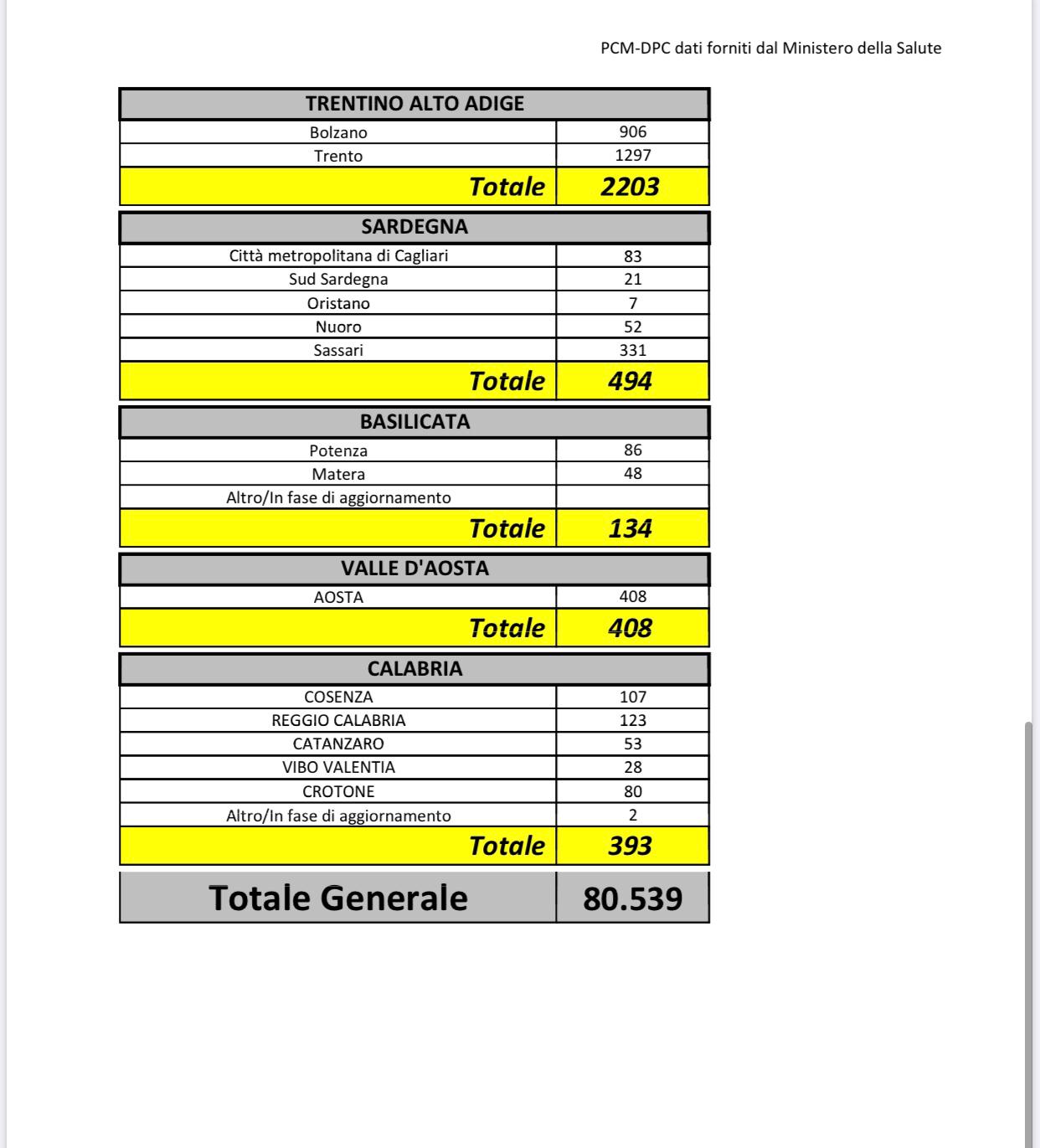 Coronavirus, diramato l’ultimo bollettino della Protezione Civile con i dati aggiornati in Italia. I casi attuali sono 62.013 (+4.492), i morti 8.165 (+662) e i guariti 10.361 (+999). Il totale dei casi complessivi sale così a 80.539 (+6.153).