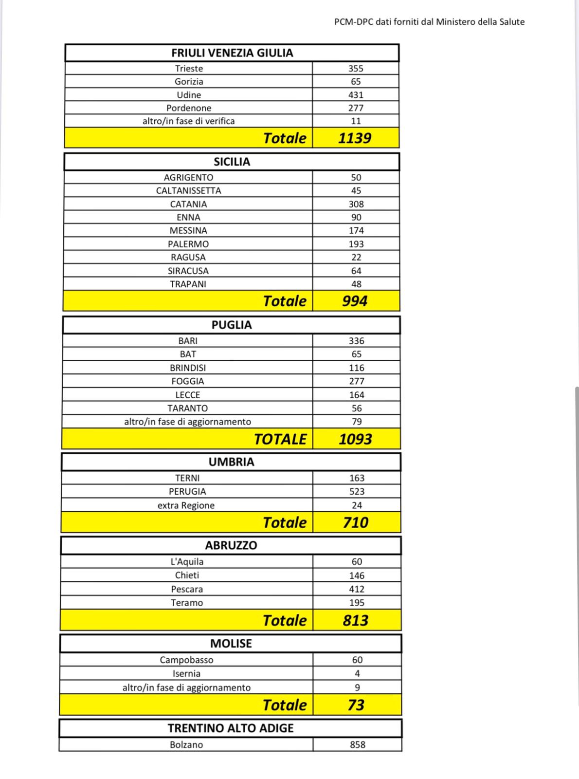 Coronavirus: i dati aggiornati al 25 marzo 2020 e la ripartizione per Regione