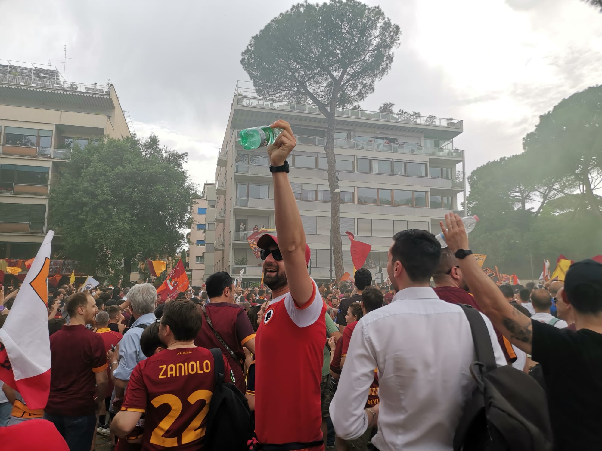 Prosegue la festa dei tifosi dell’AS Roma dopo la vittoria ieri sera della Conference League. In questo momento il pullman con la squadra – dopo i festeggiamenti andati avanti tutta la notte (e non solo a Roma) – sta sfilando per le strade della Capitale e sono a centinaia i tifosi riversatisi lungo le vie per salutare i giocatori.