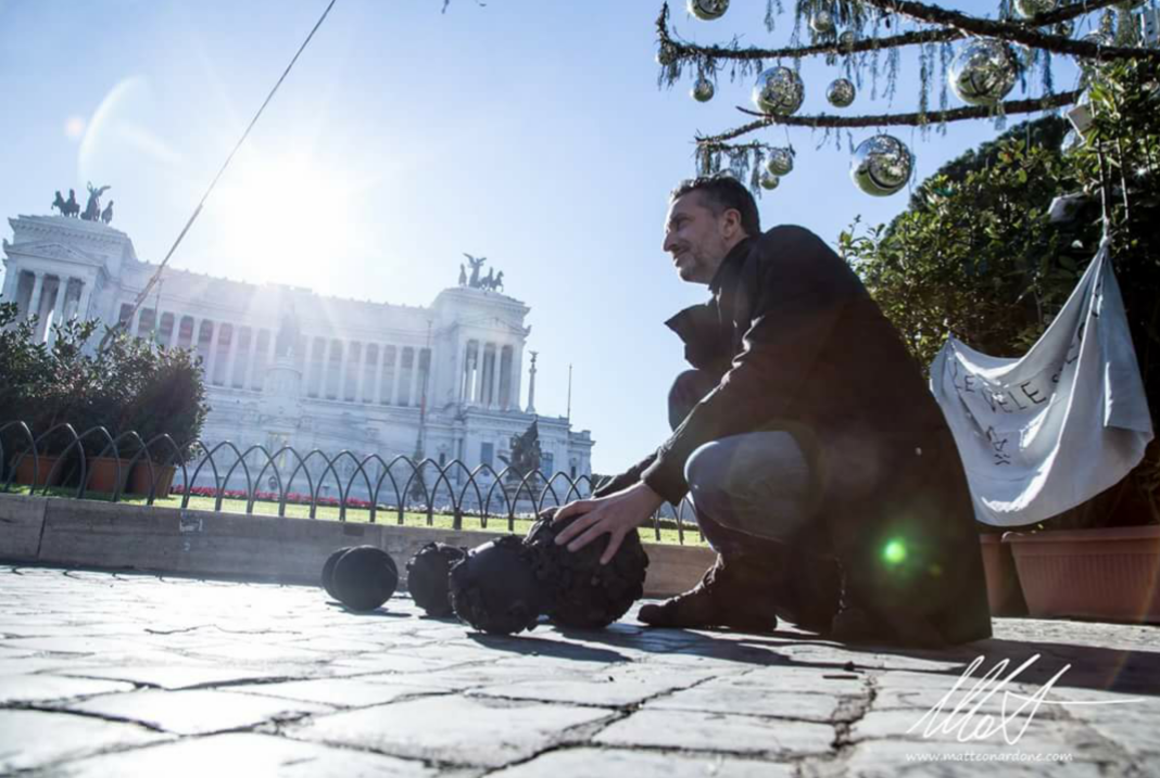 La vigilia di Natale Spelacchio, l’albero più discusso d’Italia, ha pianto lacrime di carbone, commuovendo l’intera piazza Venezia; è questa l’ultima performance dell’artista romano Vito Bongiorno noto soprattutto a Fregene e nel panorama dell’arte contemporanea per l’utilizzo simbolico del carbone.