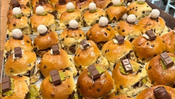 Del resto è impossibile resistere a questi ingredienti sia nel formato classico, ovvero quello che si trova comunemente in commercio, che in questo rivisitato: parliamo di un panino morbido con gocce di cioccolato, “vuoto” e chiuso nella sua forma appena ‘sfornata’ ma che si può riempire a proprio piacimento. Ebbene, da qui i titolari di questa pasticceria romana hanno pensato di creare un dolce ad hoc – chiaramente in modo del tutto artigianale – andando ad ingrandire (e di quanto!) il formato del pangocciolo tradizionale.