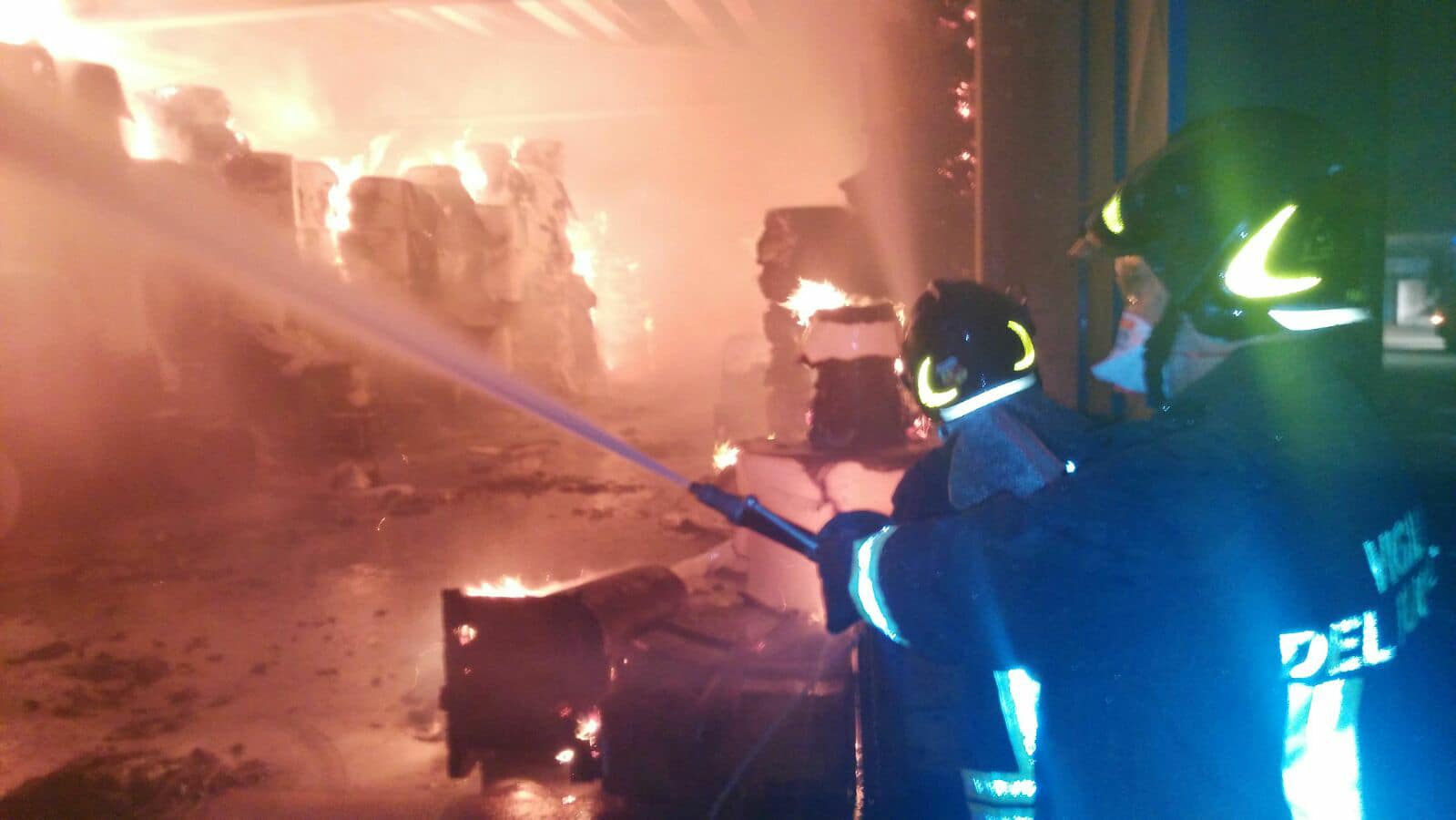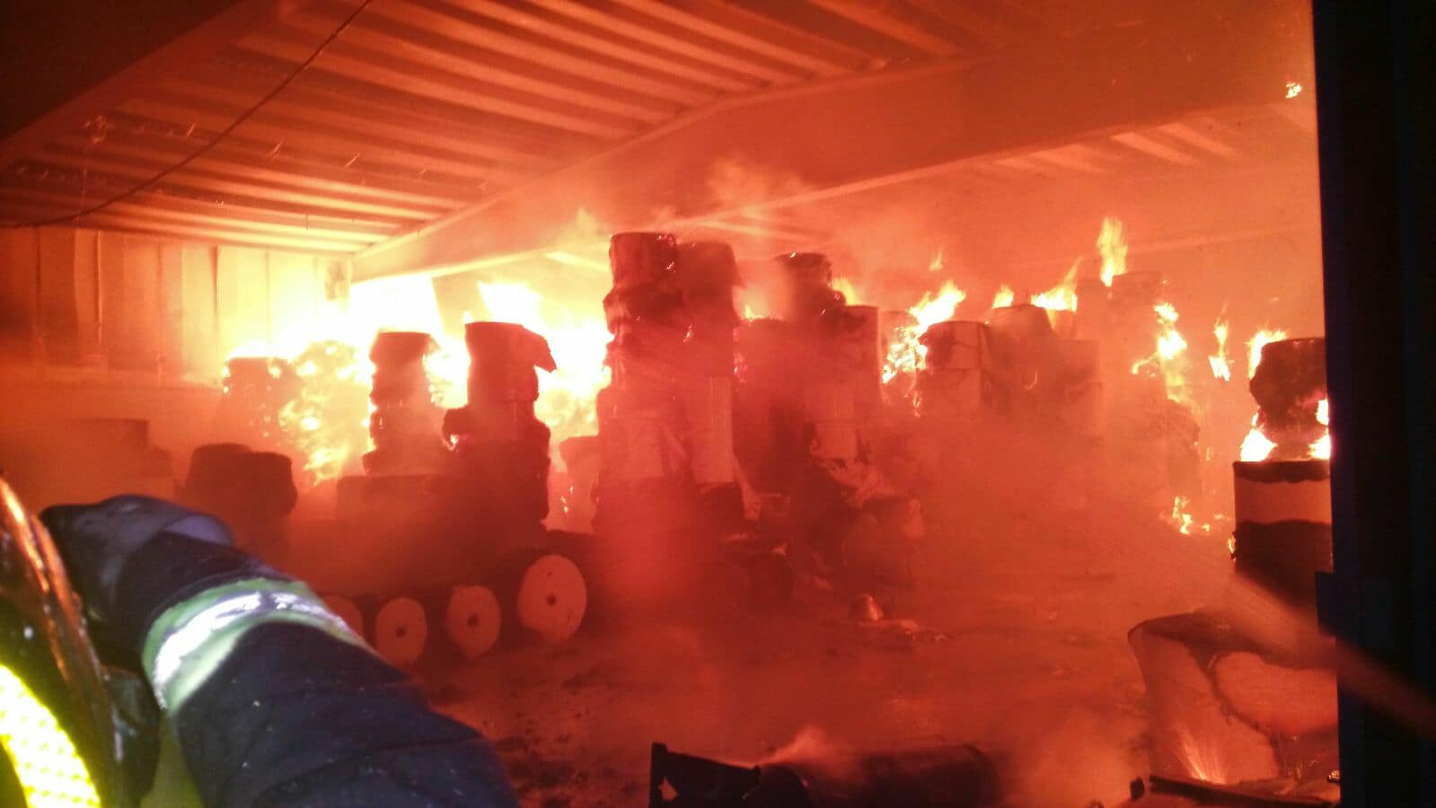 I balloni di carta, che riempivano l’intero capannone, sono stati completamente distrutti, rendendo molto difficoltose le operazioni di spegnimento.