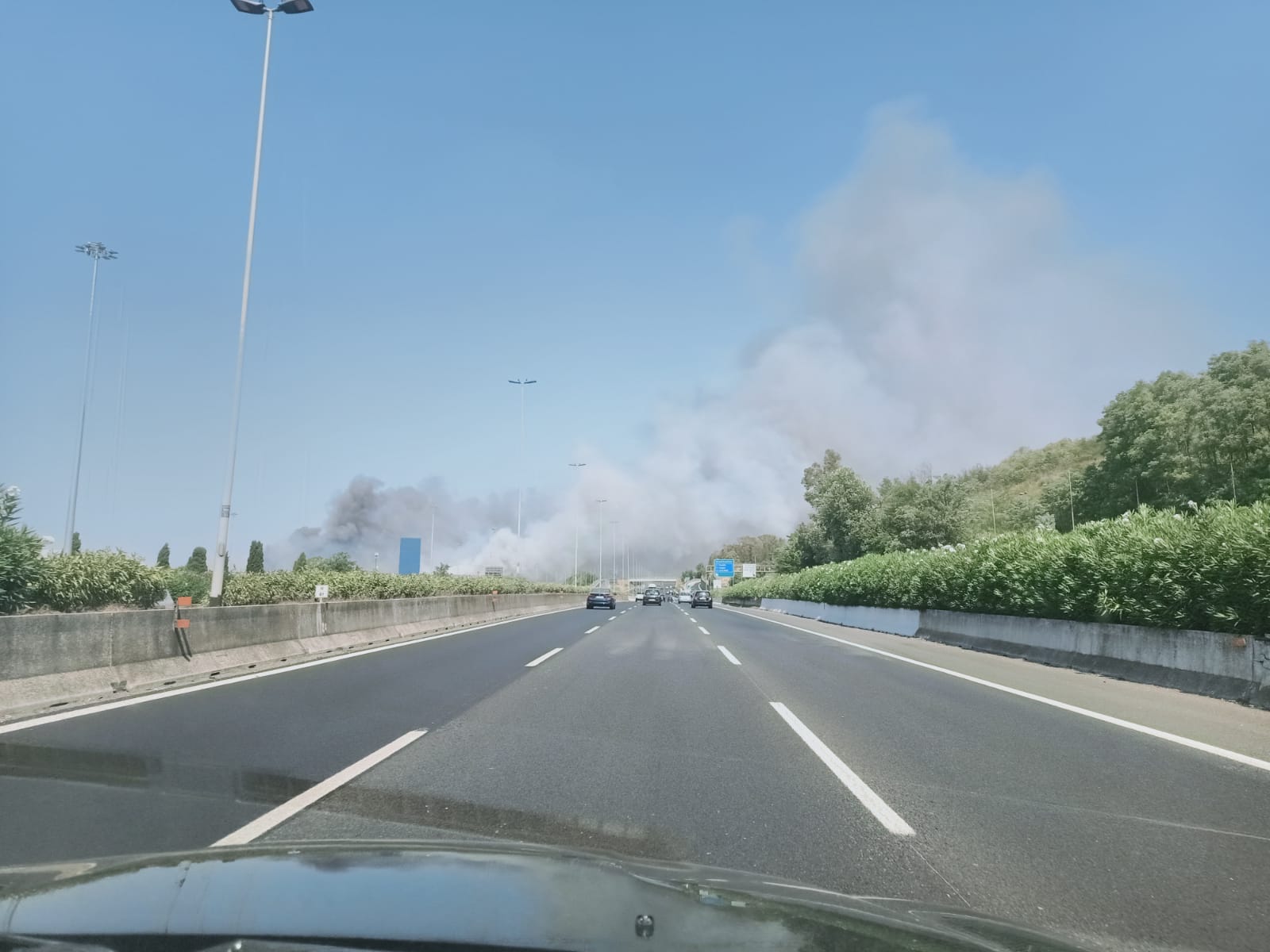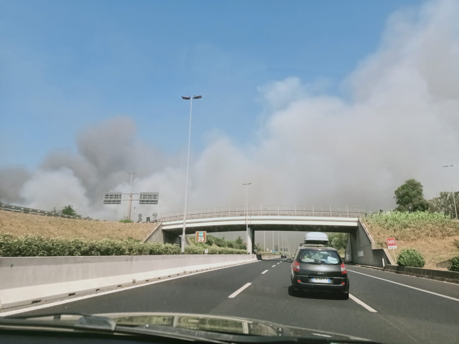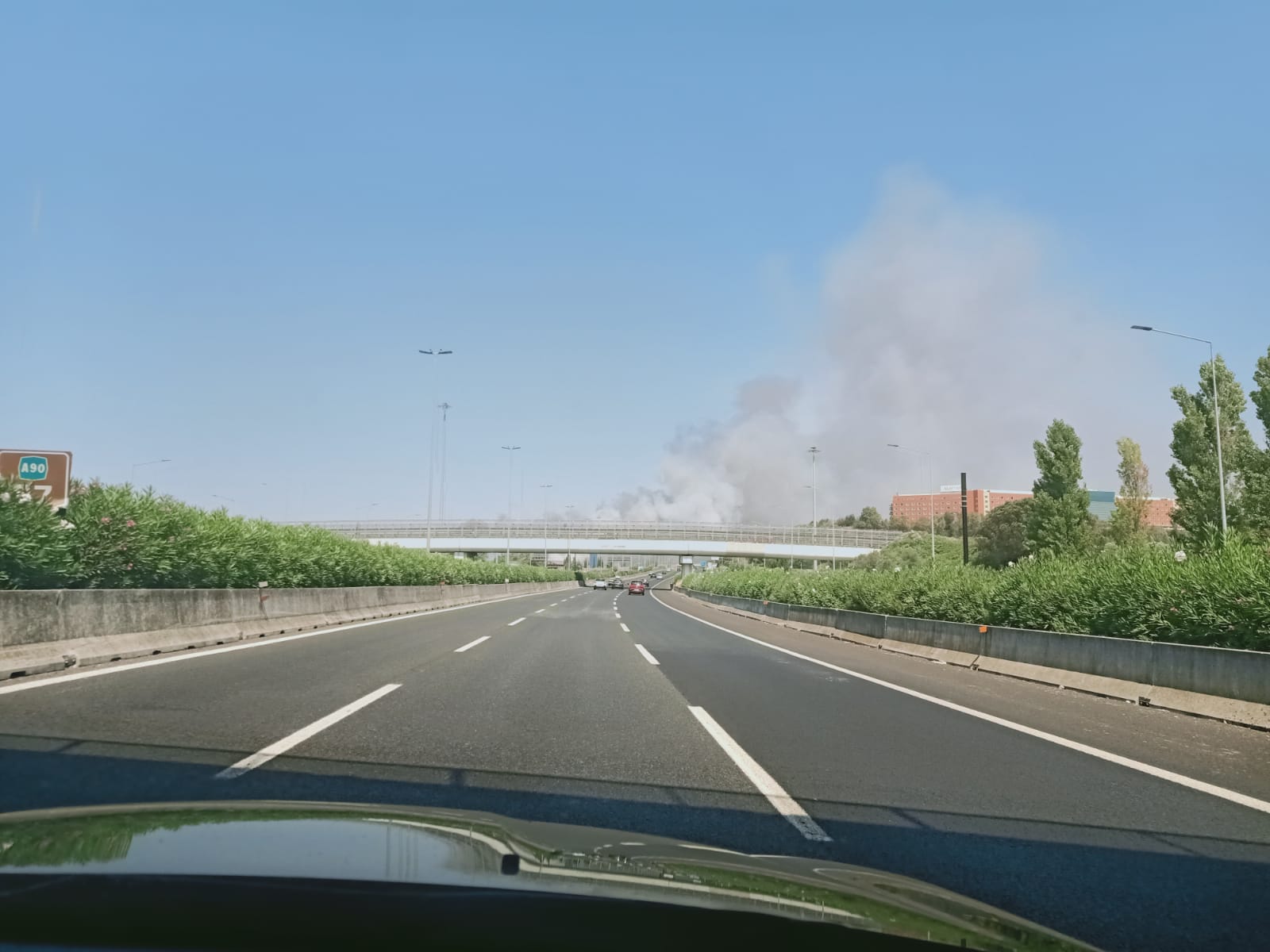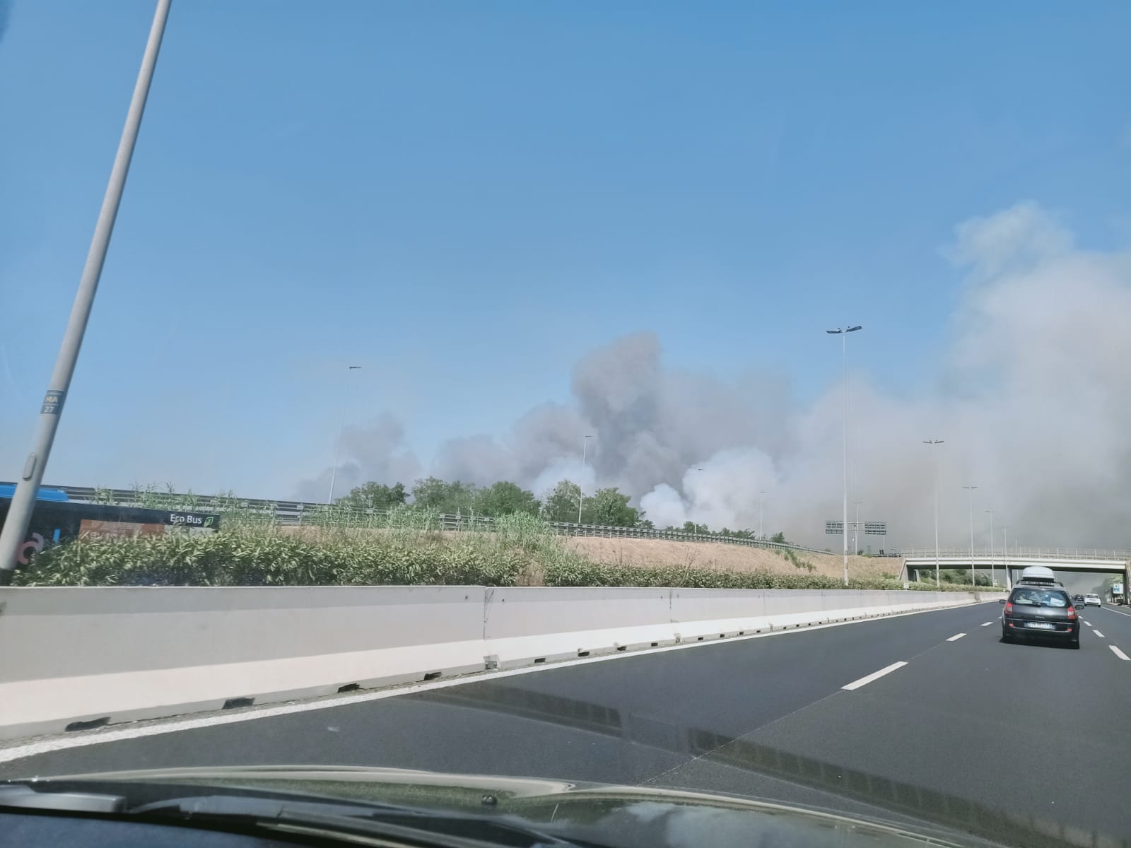 Incendio sul Grande Raccordo Anulare di Roma. Le fiamme sono divampate poco prima dell’uscita 32 La Pisana, all’altezza dell’Unieuro. Una visibile ed alta colonna di fumo ha invaso la carreggiata.