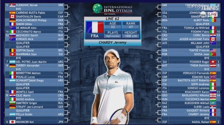 Nella parte alta sinistra del tabellone degli Internazionali BNL d’Italia 2019 troviamo Cecchinato che affronterà al primo turno Alex De Minar; il francese Lucas Pouille è stato invece accoppiato con Matteo Berrettini. Cliente difficile ai limiti del proibitivo invece per Andrea Basso che se la dovrà vedere subito con Marin Cilic.