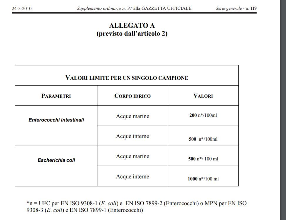 Il mare di Ladispoli è stato classificato come fortemente inquinato. Ciò significa che, in base ai parametri che fanno “riferimento ai valori limite previsti dalla normativa sulle acque di balneazione vigente in Italia”, i campioni prelevati in quelle acque hanno la presenza di Enterococchi intestinali >400 UFC/100 ml e/o Escherichia Coli >1000 UFC/100ml.
