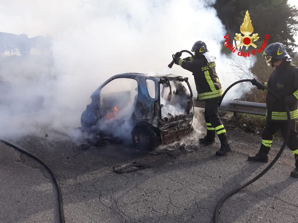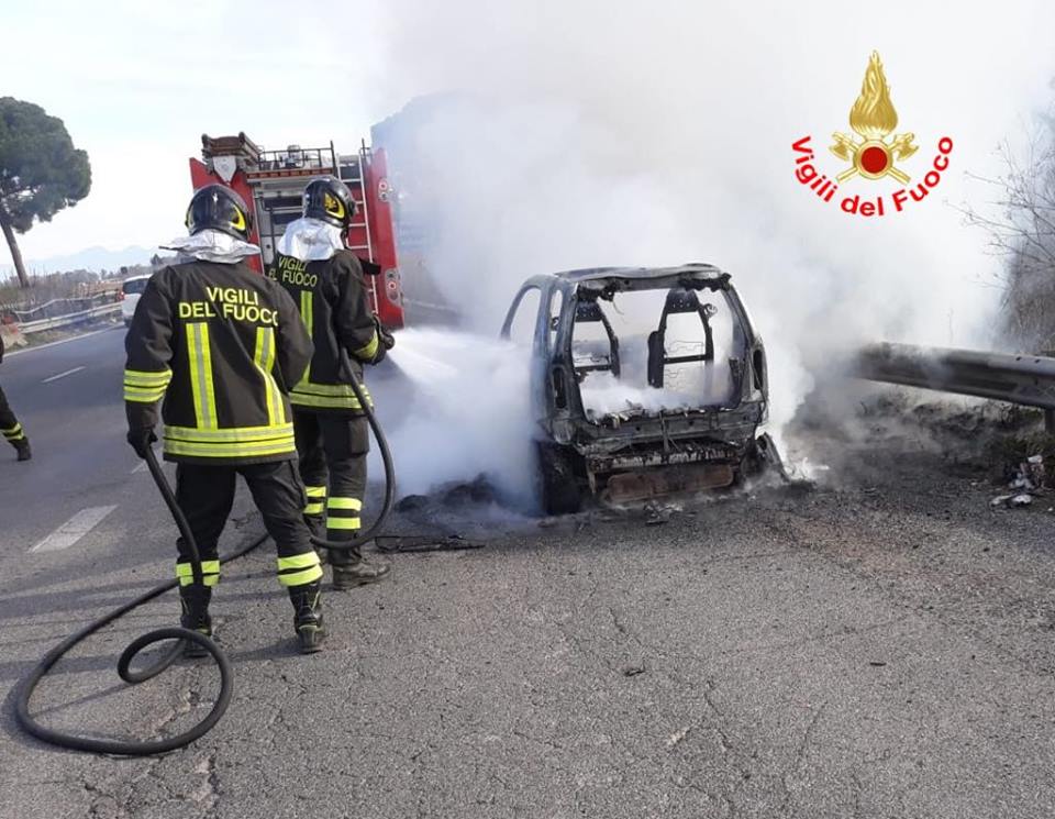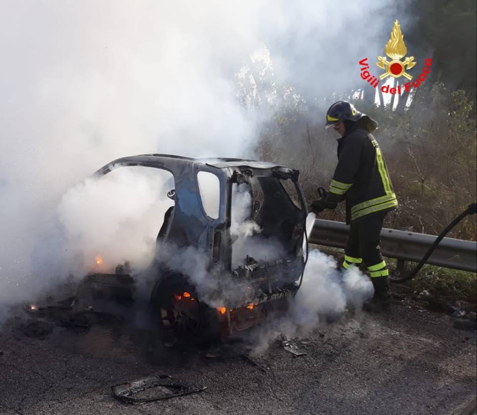 L’incendio, scaturito presumibilmente per cause accidentali, ha distrutto completamente l’autovettura che, in quegli istanti, era in movimento.