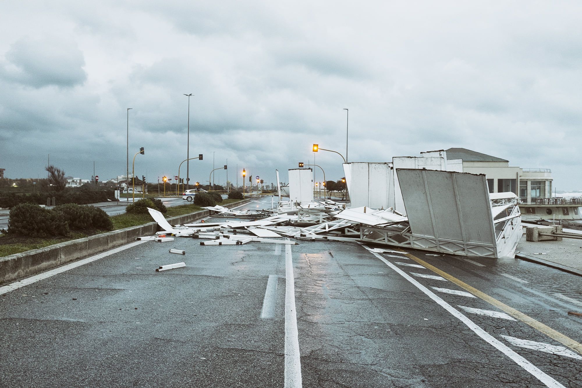 Pioggia abbondante, veri e propri temporali, forti raffiche di vento e mareggiate lungo le coste esposte. Era questo quello che il bollettino meteo nel Lazio, con un’allerta rossa,  aveva previsto dalla tarda serata di ieri e per le successive 24-36 ore. E questa mattina si iniziano a contare i danni della violenta ondata di maltempo che sta continuando ad abbattersi su Roma e su tutto il Lazio. A Ostia una forte mareggiata ha distrutto nella notte lo stabilimento Vecchia Pineta sul Lungomare Lutazio Catulo. Le cabine del lido sono state spazzate via dal vento e sono finite in strada, che è stata chiusa al traffico. Immagini desolanti e danni sicuramente ingenti.