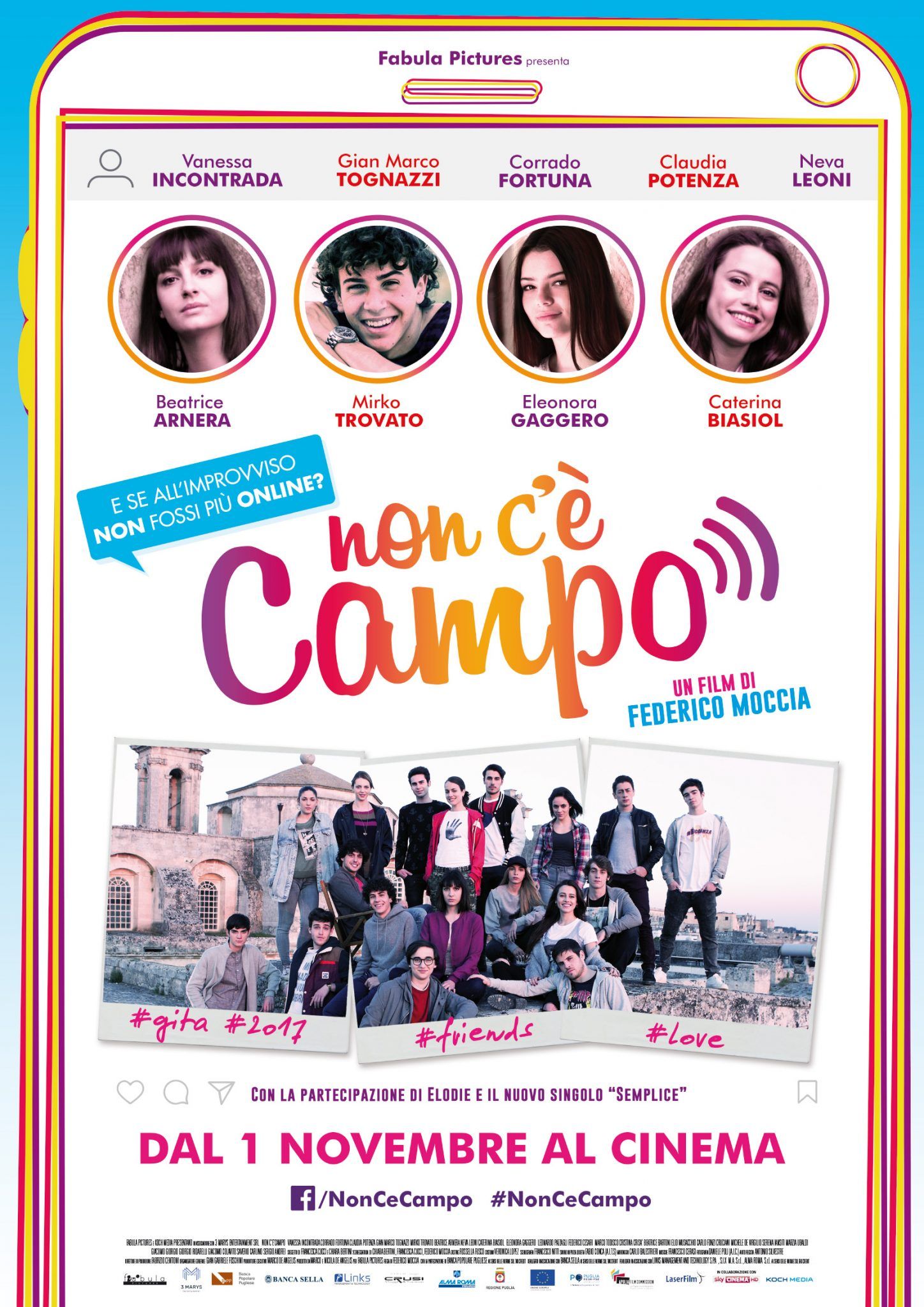 Mirko Trovato, conclusa l’esperienza nella fiction di RAI 1 Braccialetti Rossi, è tra i protagonisti dell’ultimo lavoro di Federico Moccia, “Non c’è campo“, da domani, mercoledì 1 novembre, al Cinema.  Si tratta di una divertente commedia che vede un gruppo di giovani “prigionieri” in un paesino privo delle moderne connessioni tecnologiche. Tra i protagonisti del film Non c’è campo, le cui riprese sono state effettuate a Lecce, Vanessa Incontrada, Claudia Potenza, Gian Marco Tognazzi, Corrado Fortuna ed un gruppo di giovani attori tra cui Mirko Trovato e Beatrice Arnera che hanno già lavorato insieme sul set della webserie Lontana da Me.
