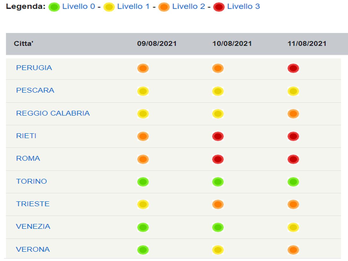 Il livello 3, secondo la classificazione del Ministero, indica condizioni di emergenza (ondata di calore) con possibili effetti negativi sulla salute di persone sane e attive e non solo sui sottogruppi a rischio come gli anziani, i bambini molto piccoli e le persone affette da malattie croniche. Tanto più prolungata è l’ondata di calore, tanto maggiori sono gli effetti negativi attesi sulla salute.