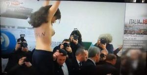 Elezioni politiche 2018, attivista Femen a seno nudo urla a Berlusconi: “Sei scaduto”