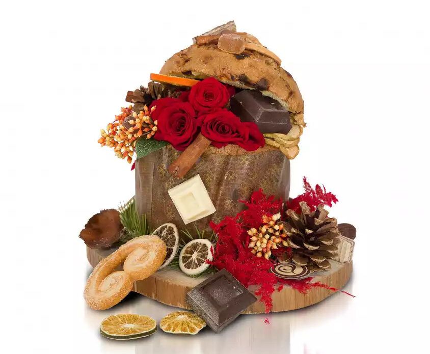 Il presupposto iniziale è semplice: non si sta qui suggerendo di porre un qualsiasi panettone al centro del tavolo per poterlo poi consumare a fine pasto insieme ai commensali. Il panettone stabilizzato è un vero e proprio elemento decorativo, un centrotavola che non va mangiato, bensì va ammirato. Infatti, non si tratta di un semplicissimo prodotto di tradizionale pasticceria natalizia, ma di un vero e proprio prodotto artigianale unico e originale, nato dall’unione del cibo e di elementi ornamentali naturali: i fiori.