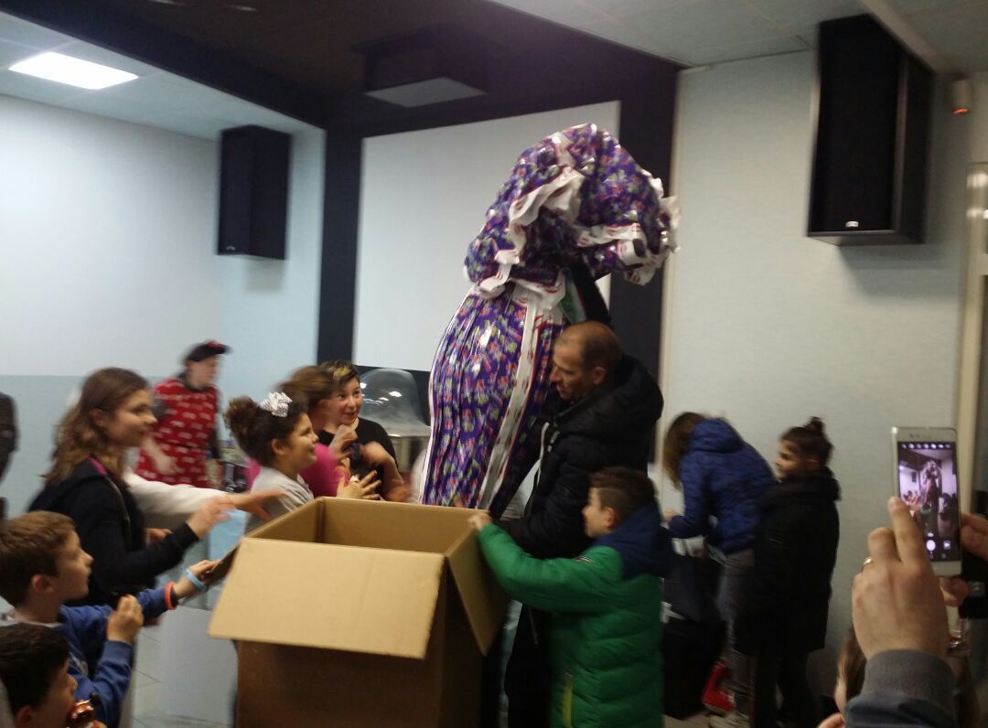 Stesse scene di giubilo questa mattina ad Amatrice, dove l’uovo gigante è stato aperto dai bimbi in presenza del sindaco Sergio Pirozzi.