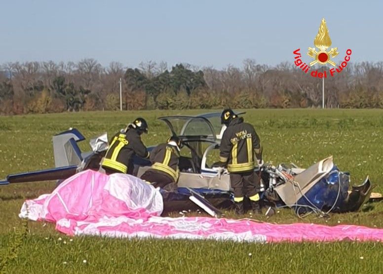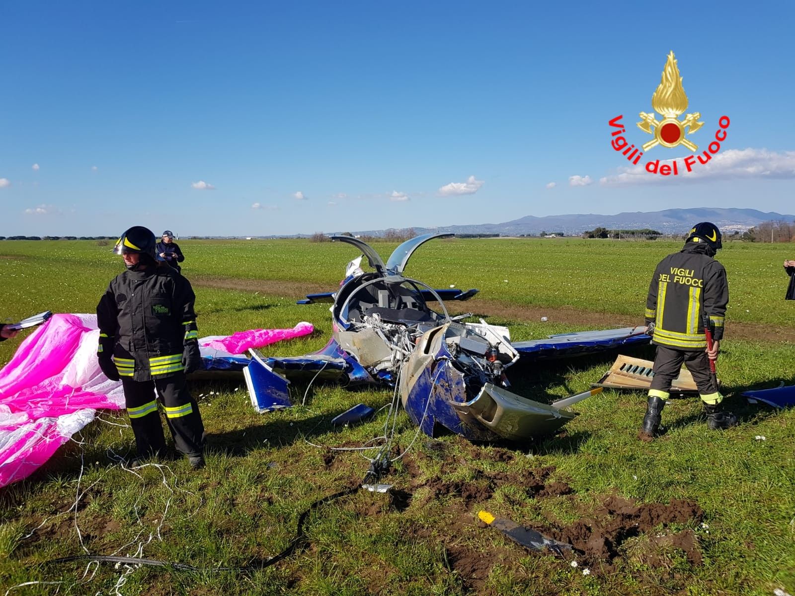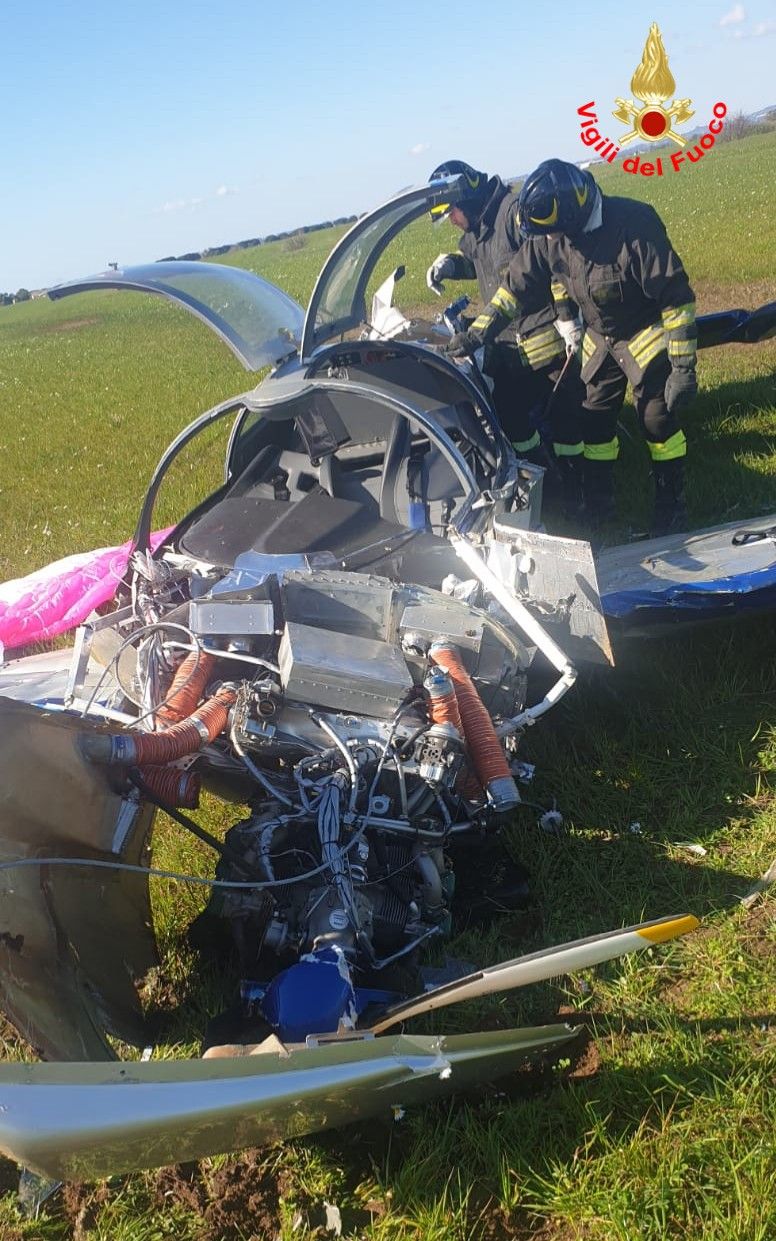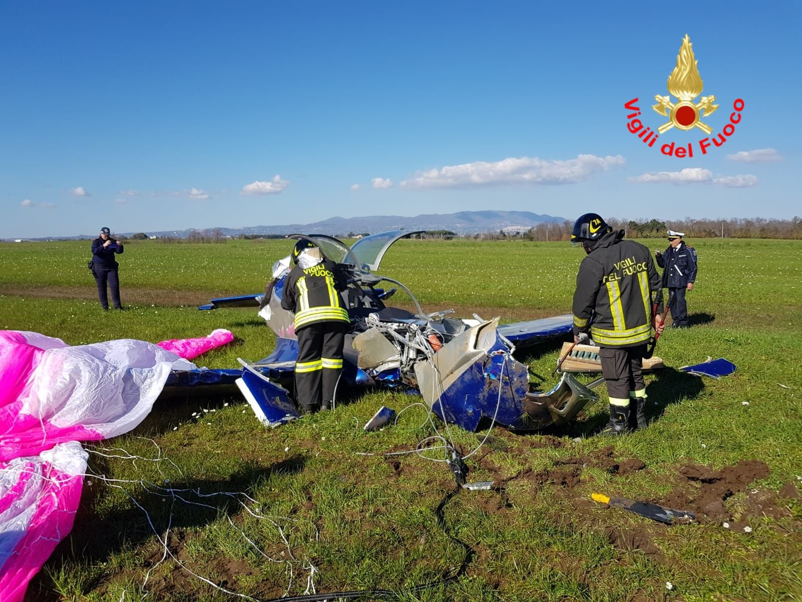 L’ultraleggero, precipitato per cause in fase di accertamento da parte delle forze dell’ordine, veniva messo in sicurezza dai vigili del fuoco.
