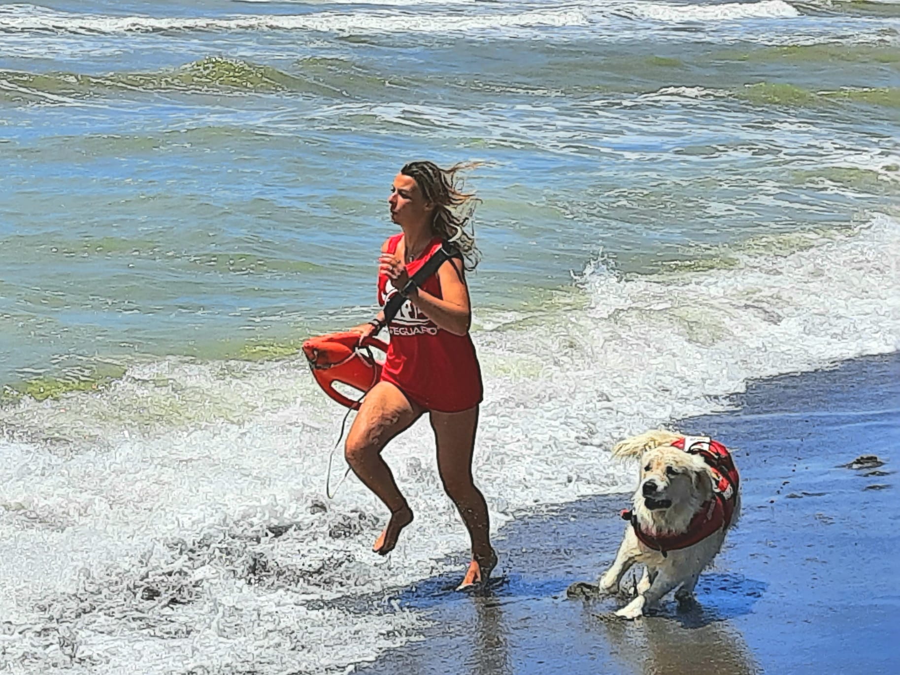 La bimba era stata trascinata lontano dalla riva da una forte corrente ed era finita in una buca. Ad intervenire per primo il padre non appena si è accorto che sua figlia era in pericolo, mentre la mamma è corsa a chiedere aiuto alla postazione di sicurezza Sics, allestita presso il Camping Riva dei Tarquini, a circa 100 metri di distanza. Botch e Sara sono intervenuti immediatamente, aiutati da un membro del personale del campeggio e hanno raggiunto la bimba e suo papà, anche lui in forte difficoltà a causa della corrente di ritorno, e li hanno riportati a riva. Un grande spavento per la famiglia romana che ha ringraziato con tante carezze l‘angelo del mare a quattro zampe.