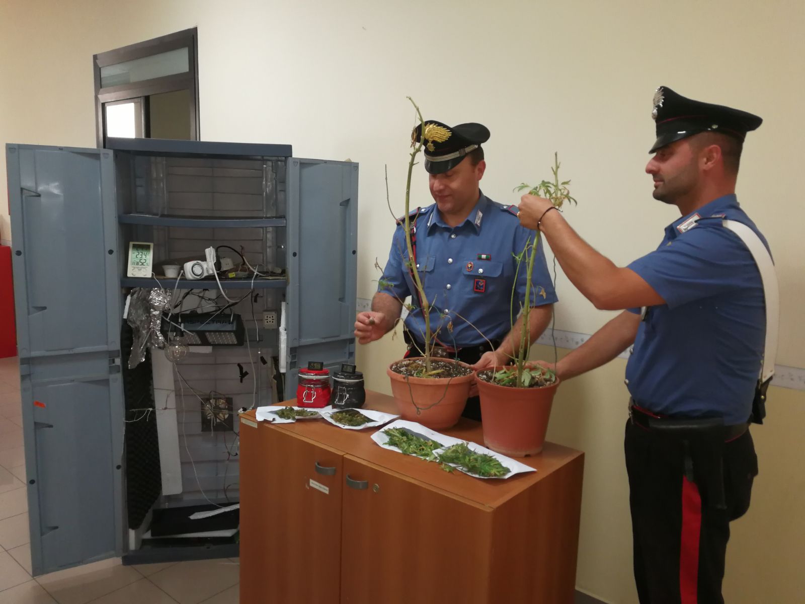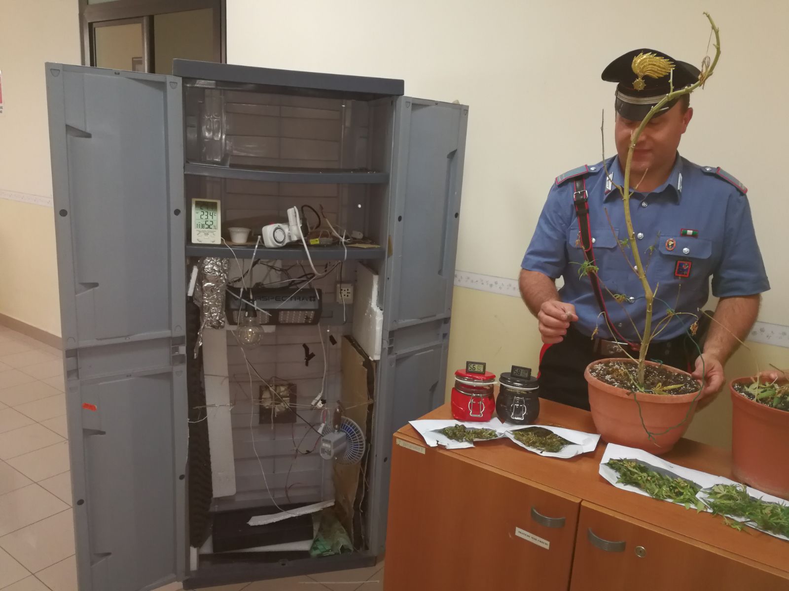 Sul terrazzo dell’abitazione del 45enne, incensurato, è stato trovato un armadio metallico al cui interno era stata creata una vera e propria serra artigianale con lampade al neon e dispositivo termoigrometrico. Nell’armadio sono state scoperte anche due piante di marijuana del peso di 49 gr circa ed alcune dosi di sostanza stupefacente già essiccata pronte per essere vendute.