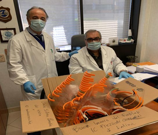 Ad oggi hanno già prodotto oltre 1.500 dispositivi consegnati ad Asl, Carabinieri, Guardia di Finanza, Polizia, e altre strutture dedicate all’emergenza. E oggi alcune di queste, grazie a Francesco Sciuto, sono arrivate anche a Pomezia, recapitate direttamente al Direttore Sanitario del S. Anna Rosario Sciuto e al Direttore Amministrativo Fabio Bambini.