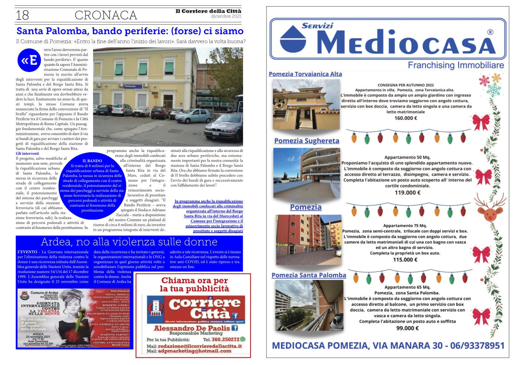 Il progetto, salvo modifiche al momento non note, prevede la riqualificazione urbana di Santa Palomba, la messa in sicurezza delle strade di collegamento con il centro residenziale, il potenziamento del sistema dei parcheggi a servizio della stazione ferroviaria (di cui abbiamo parlato nell’articolo sulla stazione ferroviaria, ndr), la realizzazione di percorsi pedonali e attività di contrasto al fenomeno della prostituzione. In programma anche la riqualificazione degli immobili confiscati alla criminalità organizzata all’interno del Borgo Santa Rita in via del Mare, ceduti al Comune per l’integrazione e il reinserimento socio-lavorativo di prostitute e soggetti disagiati.