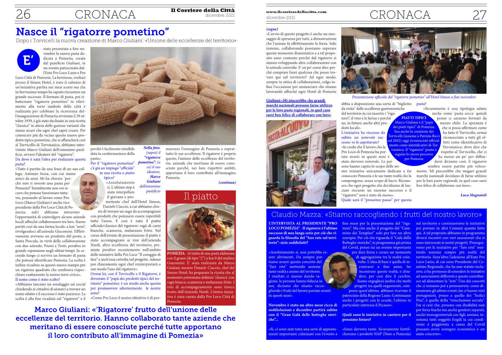 «Io credo che il lavoro che la Pro Loco di Pomezia ha portato avanti in questi anni è stato davvero notevole. Le persone hanno capito lo scopo delle nostre iniziative unicamente dedicate a far conoscere Pomezia e le sue tante realtà che la compongono, senza scopo di lucro. Riconosco che ogni progetto che decidiamo di lanciare riscuote un enorme successo e il “rigatorre” non è stato da meno».