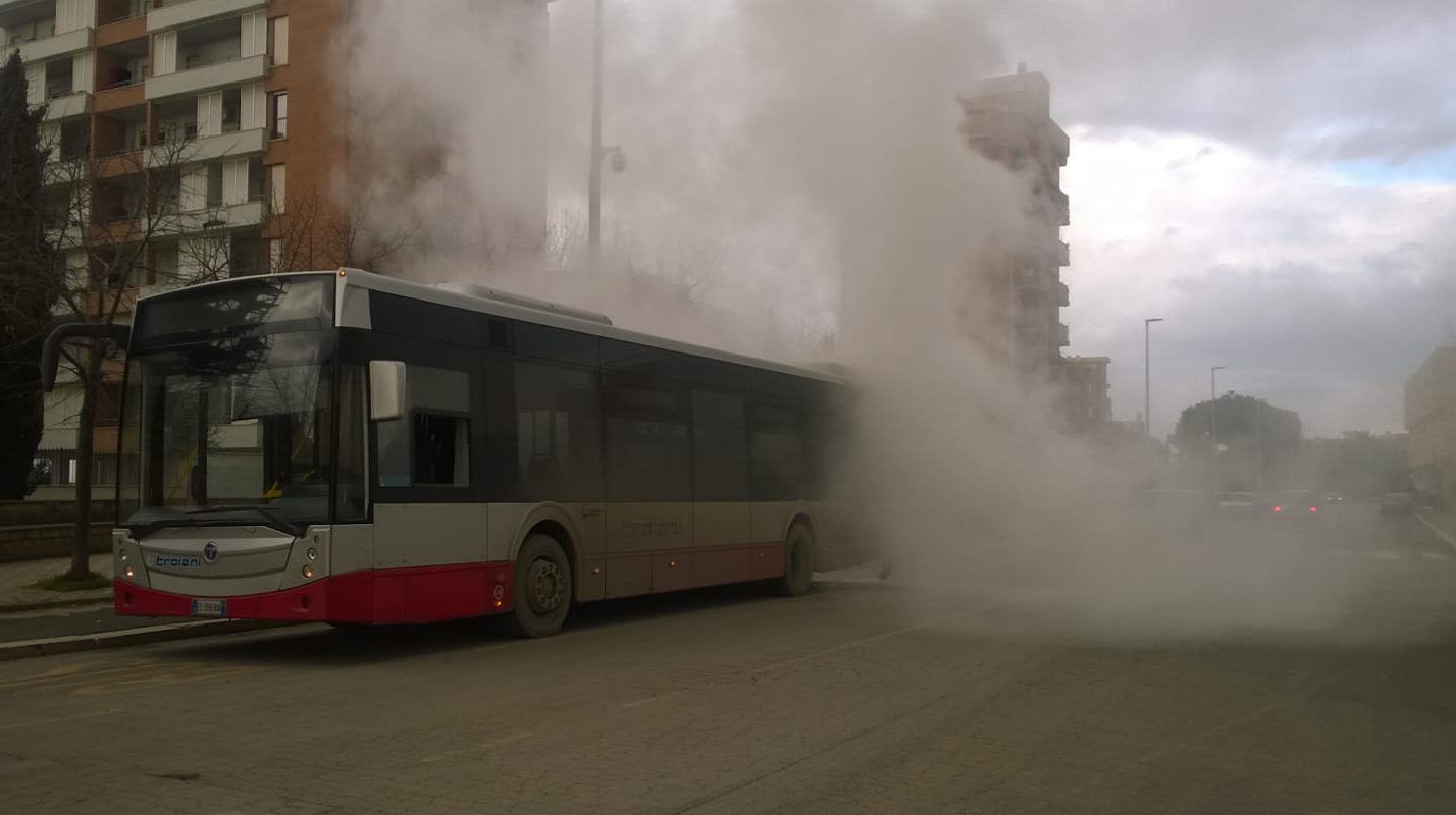 Momenti di paura poco fa a Pomezia, in via Don Luigi Sturzo, nel quartiere Nuova Lavinium, proprio davanti all’entrata del liceo scientifico Blaise Un bus della linea TPL Troiani, linea 2, dopo aver girato dalla rotonda di via Alcide De Gasperi per dirigersi verso il capolinea ha iniziato a far fuoriuscire del denso fumo nero dalla parte posteriore.