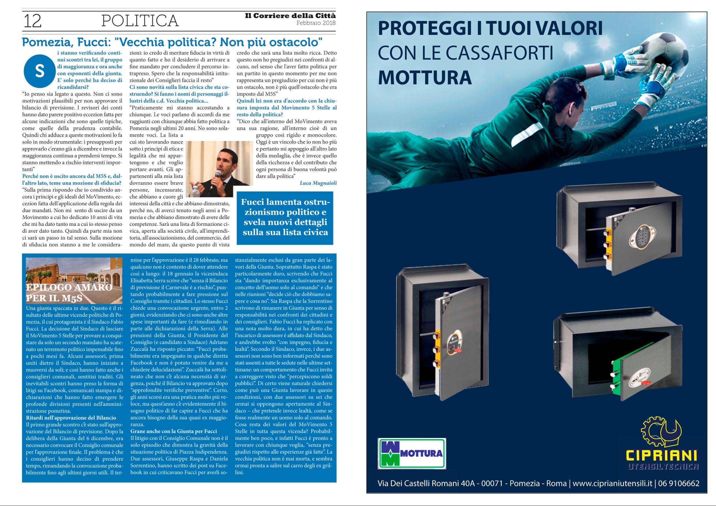 Del resto, meno di un mese fa, dichiarava al nostro giornale “che l’aver fatto politica con i partiti non rappresentava più un ostacolo” e che tale dogma “era un’imposizione dettata dal Movimento che forse in quel contesto aveva anche senso ma che ora – per Fucci – non lo ha più”. Vi basta?