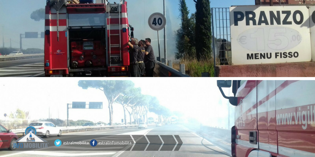 Ma problemi maggiori al traffico sono stati dati da due grossi incendi, avvenuti intorno alle ore 17, uno all’altezza di Pomezia, al chilometro 31+700, che ha provocato lunghe code in entrambe le direzioni, e l’altro al chilometro 23+700, con veicoli fermi in direzione Latina.