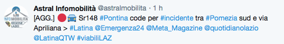A peggiorare le cose un secondo incidente, stavolta tra due auto, avvenuto poco fa all’altezza dello svincolo di via Laurentina, bivio Caronti, sempre in direzione Latina. In questo caso una persona ha avuto necessità di ricorrere alle cure mediche. Un’ambulanza è al momento sul posto.