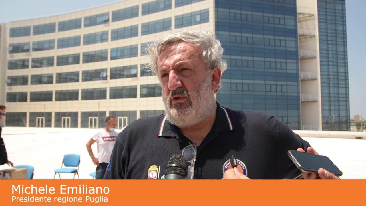 Il presidente della Regione Puglia Michele Emiliano, a Bari, ha parteipato alla consegna di una parte dei defibrillatori ai Comuni che hanno aderito al programma regionale per l’ottenimento dei dispositivi e dei corsi di utilizzo collegati.