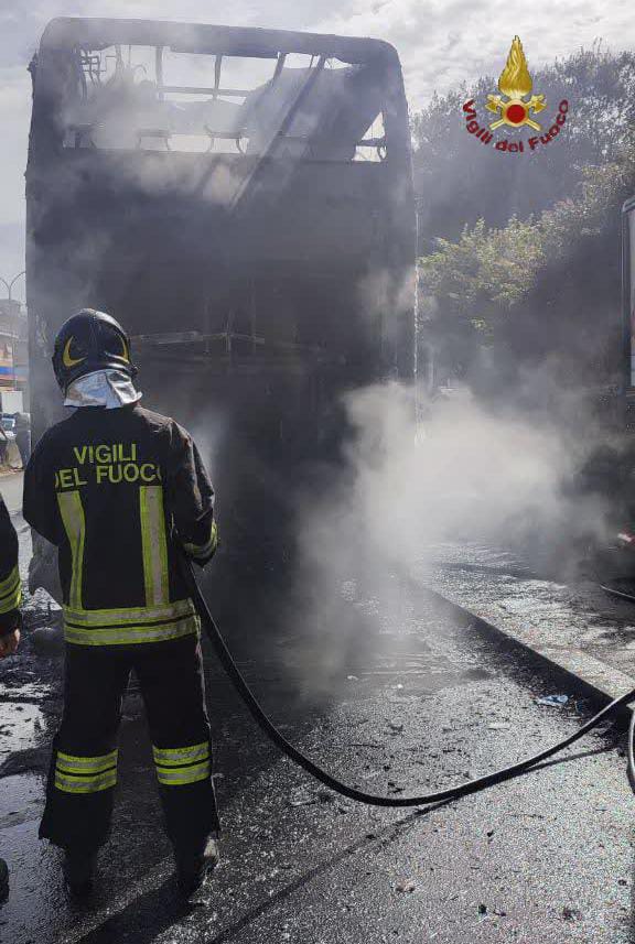 Il rogo è avvenuto questa mattina, poco dopo lo svincolo per il Raccordo ed ha coinvolto la parte posteriore di un pullman a due piani della società Troiani. Le fiamme sono divampate poco dopo le 9 in via Aurelia796.
