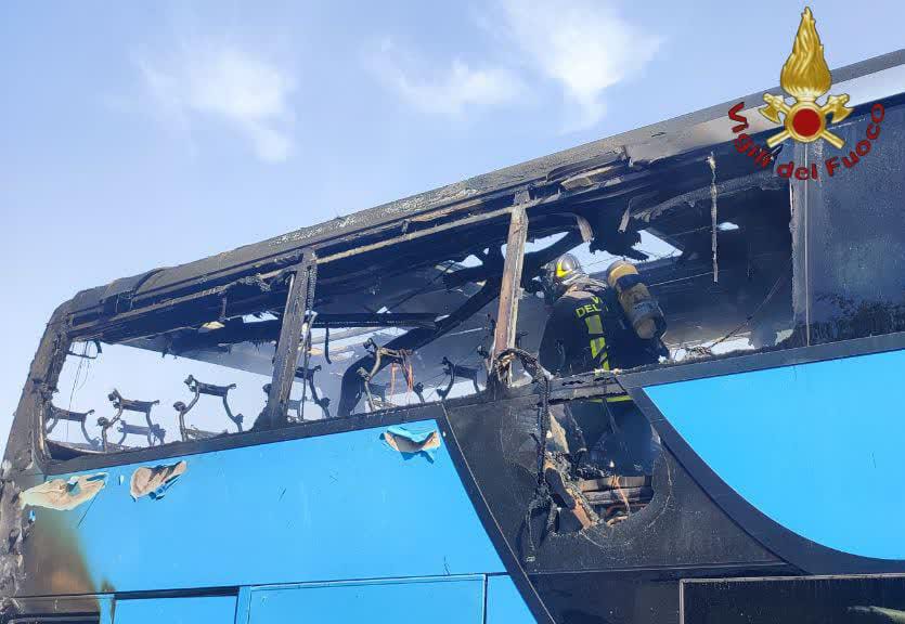 Partite dal vano motore, il fumo e le fiamme hanno poi coinvolto la parte posteriore della carrozzeria provocando ingenti danni al pullman.