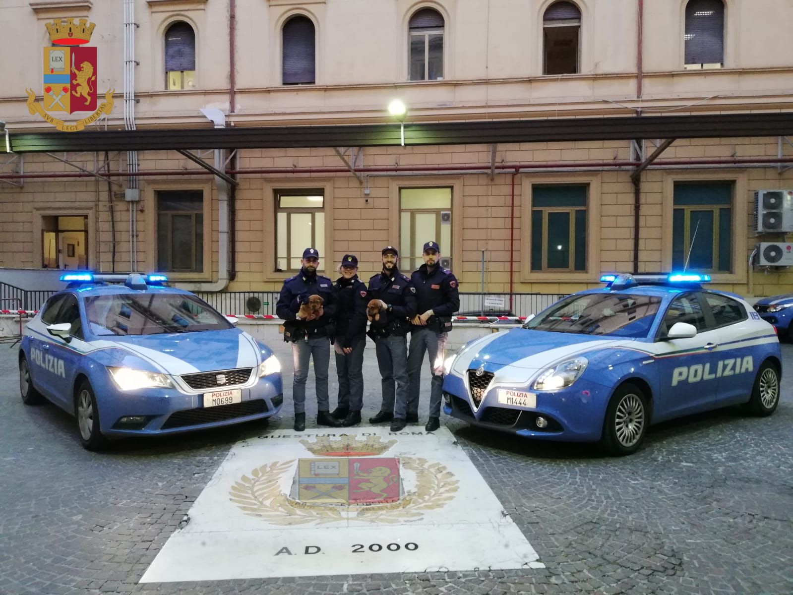 Uno degli agenti del Reparto Volanti, intervenuti sul posto a seguito della segnalazione di alcuni cittadini che avevano assistito attoniti alla scena, ha deciso di adottarli.
