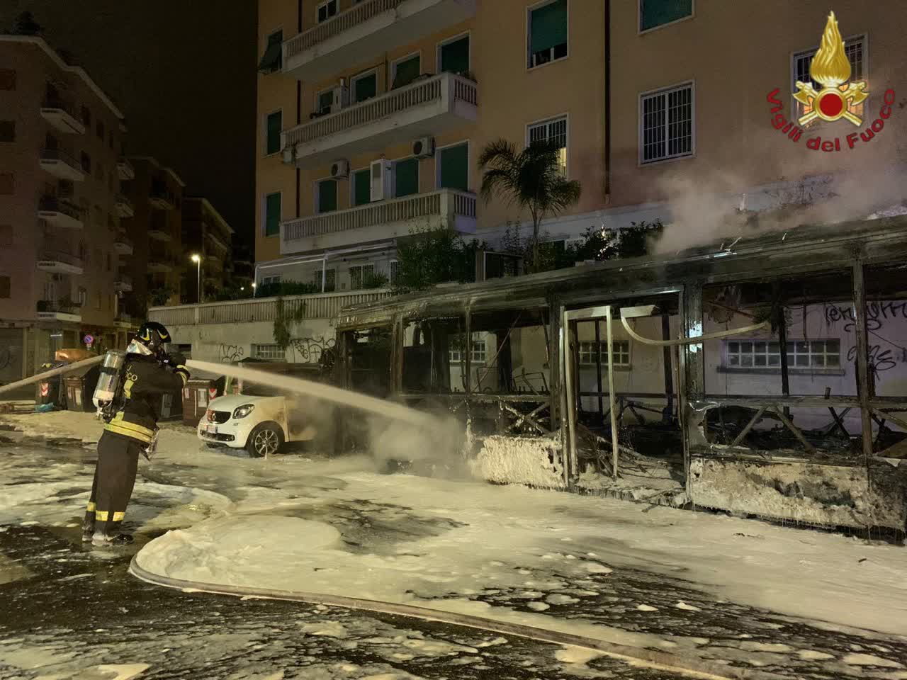 Paura questa notte, dopo le ore 3.30, in via Aurelia al civico nr. 400, dove è andato in fiamme l’ennesimo autobus Atac. Nessuna persona è rimasta ferita, ma vista la notevole quantità di fumo sprigionato è stata affidata alle cure del personale sanitario del 118 un’anziana signora per i controlli di routine. Una pizzeria adiacente al luogo dell’incendio è stata, invece, danneggiata dalle fiamme perché parzialmente investita dal calore, che ha coinvolto le parti esterne dell’attività.