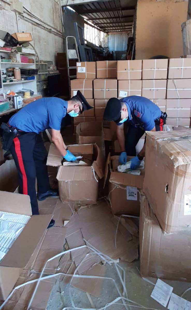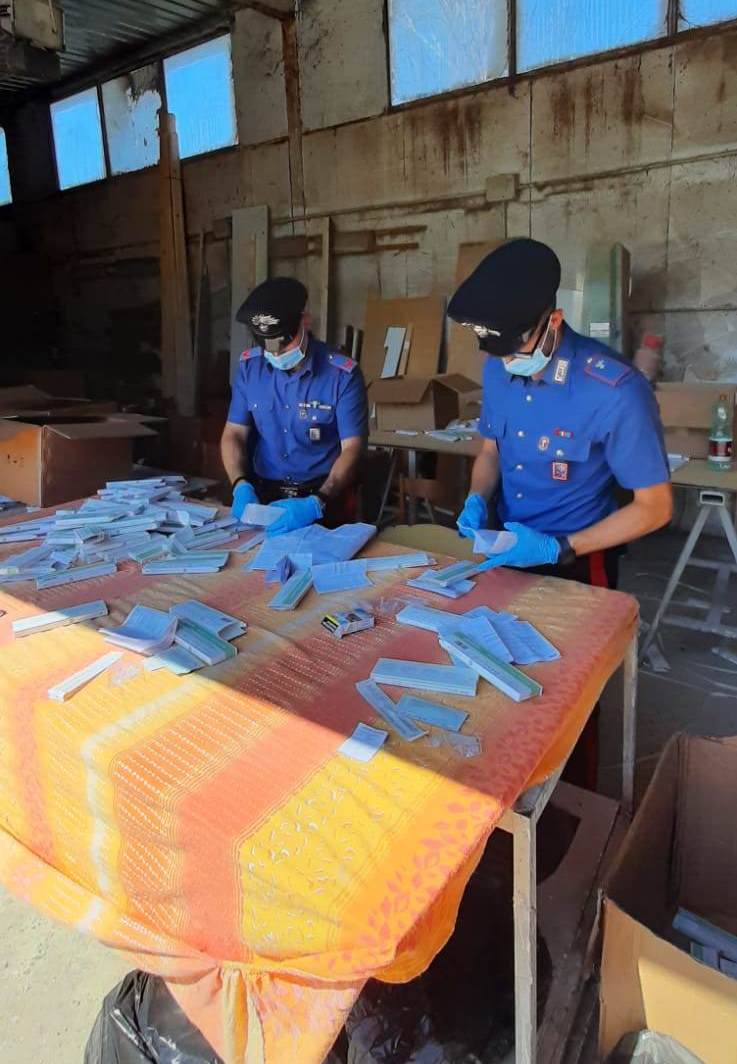 Tutto il materiale rinvenuto nel capannone è stato sequestrato portato via dai Carabinieri. Nella circostanza, i militari hanno anche contestato il mancato rispetto della normativa per fronteggiare l’emergenza da Covid-19 ai lavoratori trovati nel capannone (assenza di mascherine, gel igienizzanti, fogli informativi, etc.).