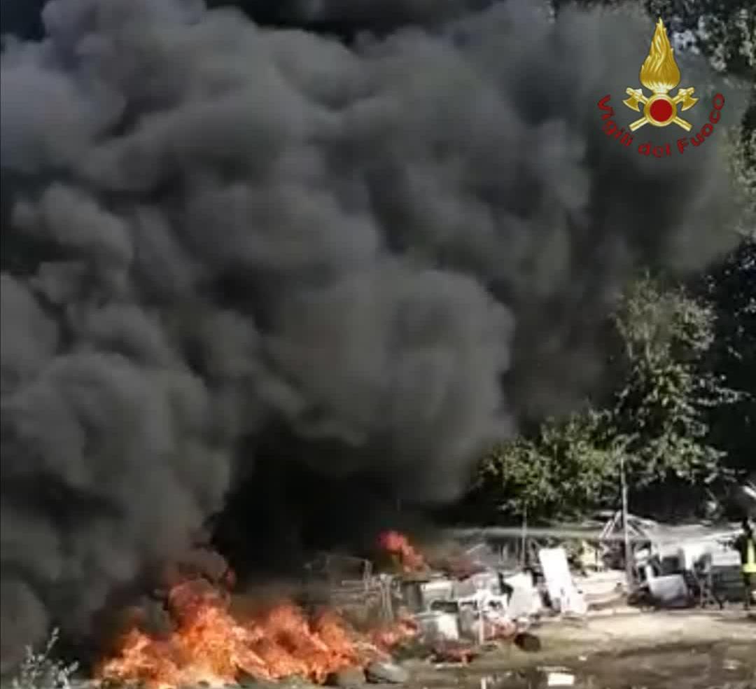 Continua l’intervento dei Vigili del Fuoco: l’incendio è quasi completamente estinto. Successivamente si lavorerà alla bonifica e messa in sicurezza di tutta l’area coinvolta.